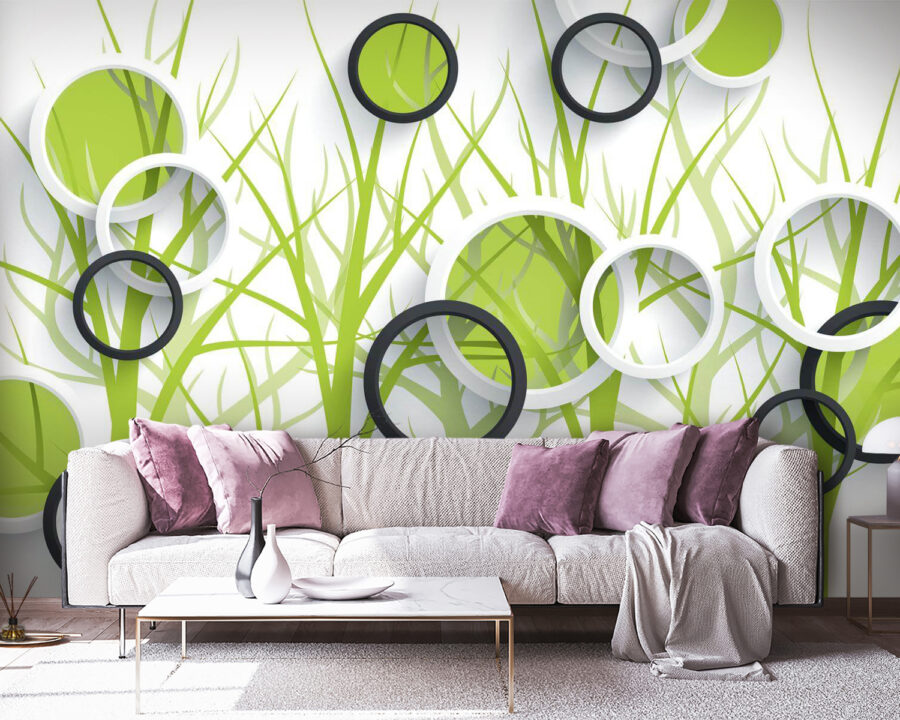 Premena miestnosti na útulné útočisko môže byť len otázkou odlepenia a nalepenia tejto „nástenné tapety s kruhmi a stromami“. Predstavte si, že vstúpite do sveta, kde sa geometrické tvary stretávajú s čarom prírody. Tieto žiarivé zelené farby v kombinácii s čistými líniami kruhov vytvárajú vzdušnú atmosféru, ktorá pôsobí sviežo – ako keby ste otvorili okno na jar! Nie sú potrebné žiadne kladivá ani klince; táto tapeta sa odlepuje a lepí ako sen. Je ideálna do hravých detských izieb, štýlových obývačiek alebo akéhokoľvek priestoru, ktorý potrebuje rýchlu vzpruhu. Predstavte si, ako popíjate rannú kávu a necháte sa unášať víriacimi vzormi, alebo ako hostíte priateľov, ktorí nemôžu odolať obdivu vášho nástenného umenia. Vyvolá to konverzácie a možno aj trochu závisti – len trošku. Pripravte sa teda na tento netradičný, ale pokojný dekor, ktorý bez zbytočného rozruchu vnesie do interiéru kúsok prírody.