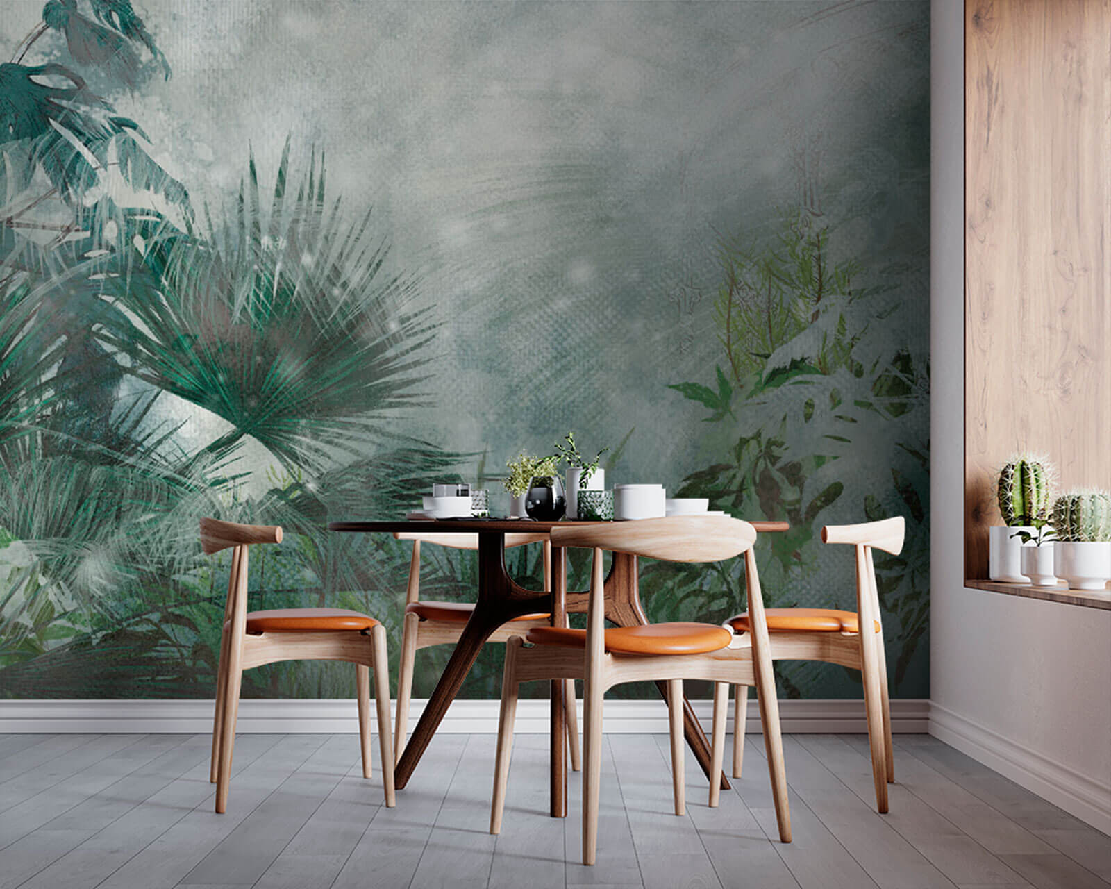 S touto nástennou maľbou inšpirovanou lesom premeníte akýkoľvek priestor na upokojujúce útočisko. Predstavte si, že stojíte uprostred vysokých listnatých paliem, ktoré sa jemne kolíšu v jemnom vánku – ach, ten pokoj! Tento kúsok pozýva prírodu priamo do vašej obývačky a vďaka sviežej zeleni a tlmeným tónom okamžite rozžiari každý kút. Je to ako minidovolenka doma, bez cestovateľských starostí. Či už popíjate rannú kávu alebo sa krútite s knihou, táto nástenná maľba navodí pokojnú atmosféru. Priatelia sa možno zastavia, aby nasali pokojnú energiu. Kto by povedal, že trochu lístia môže priniesť toľko radosti?