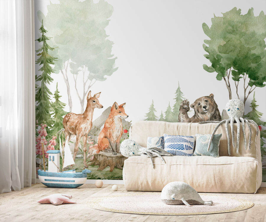 Len sa pozrite na túto očarujúcu lesnú scénu! Táto nástenná maľba “Lesné zvieratká sa srdečne vítajú” je ideálna do každej detskej izby a je akoby priniesla rozprávku do vášho domova. Predstavte si, že sa vaše dieťatko zobudí na medveďa, ktorý mu zamáva na pozdrav, na jelene a líšky, ktoré sa ráno rozprávajú, a na roztomilého ježka, ktorý sa len tak prechádza. Je to ako lesná paráda priamo na vašich stenách! Jemná, akvarelová atmosféra dodáva nádych rozmarnosti a tepla, ktoré sú ideálne na vytvorenie útulnej a čarovnej atmosféry. Vaše deti to budú zbožňovať – a úprimne, pravdepodobne sa pristihnete pri tom, že sa usmievate zakaždým, keď idete okolo!