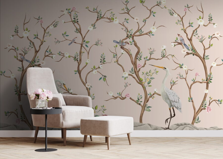 Premeňte akúkoľvek miestnosť na pokojné útočisko s touto nádhernou nástennou maľbou s očarujúcimi vtákmi a elegantnými kvetmi. Predstavte si, že vstúpite do priestoru, ktorý pripomína záhradu, kde ožíva jemné šušťanie lístia a veselé štebotanie operených priateľov – no dobre, možno nie skutočné zvuky, ale pochopíte tú atmosféru! Táto nástenná maľba prináša kúsok prírody do interiéru a je ideálna pre útulné priestory, kde je kľúčová relaxácia. Je to ako každodenná pripomienka, že krása je všade, aj keď sa len snažíte vychutnať si rannú kávu. Navyše, jemné farby sa ľahko kombinujú s akýmkoľvek dekorom, takže sa nemusíte stresovať zladzovaním. Či už je to v obývacej izbe, spálni alebo útulnom kútiku na jedenie cestovín, táto tapeta určite vyvolá radosť a odkaz na prírodu – nie je potrebný žiadny zelený palec!