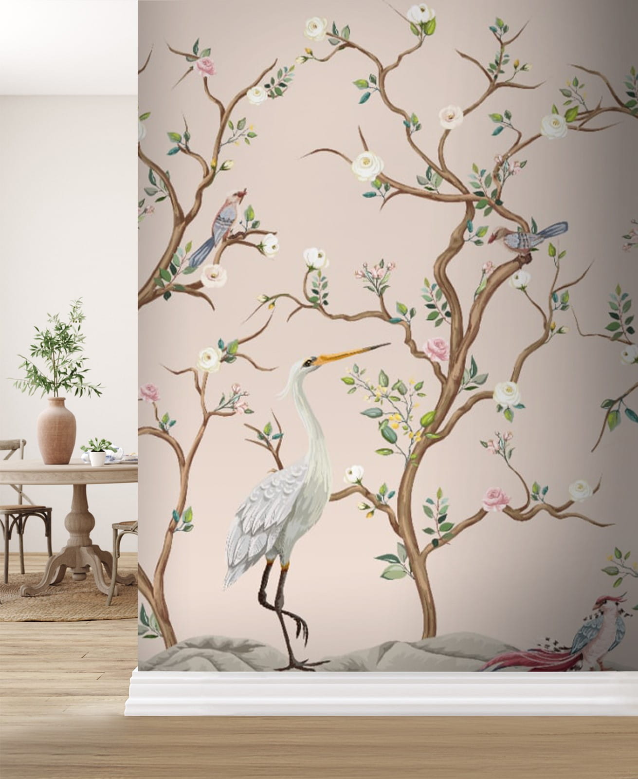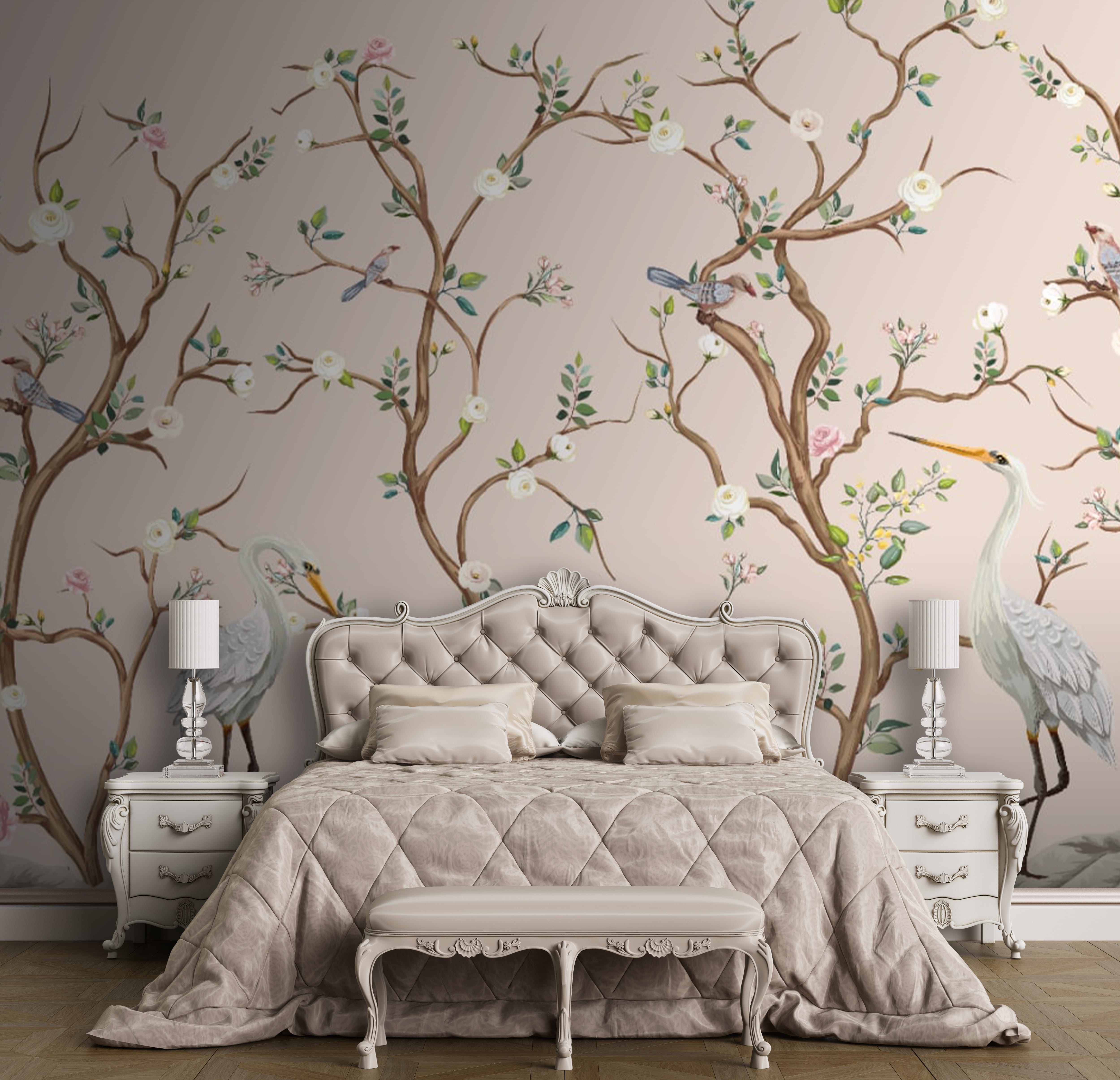 Premeňte akúkoľvek miestnosť na pokojné útočisko s touto nádhernou nástennou maľbou s očarujúcimi vtákmi a elegantnými kvetmi. Predstavte si, že vstúpite do priestoru, ktorý pripomína záhradu, kde ožíva jemné šušťanie lístia a veselé štebotanie operených priateľov – no dobre, možno nie skutočné zvuky, ale pochopíte tú atmosféru! Táto nástenná maľba prináša kúsok prírody do interiéru a je ideálna pre útulné priestory, kde je kľúčová relaxácia. Je to ako každodenná pripomienka, že krása je všade, aj keď sa len snažíte vychutnať si rannú kávu. Navyše, jemné farby sa ľahko kombinujú s akýmkoľvek dekorom, takže sa nemusíte stresovať zladzovaním. Či už je to v obývacej izbe, spálni alebo útulnom kútiku na jedenie cestovín, táto tapeta určite vyvolá radosť a odkaz na prírodu – nie je potrebný žiadny zelený palec!