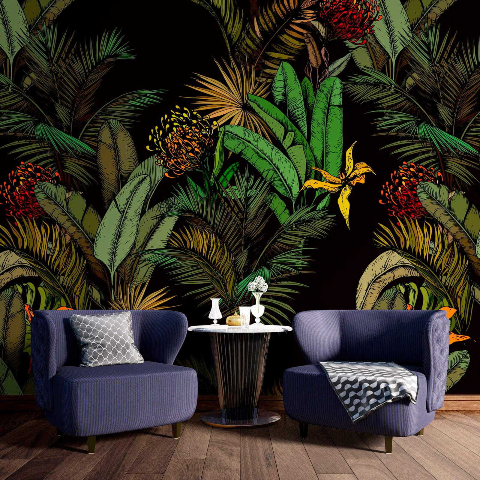 Predstavte si, že vstúpite do miestnosti, ktorá pripomína sviežu tropickú oázu. Presne to získate s touto nástennou maľbou “Bujné tropické lístie a živé kvety”. Je to, akoby sa sama matka príroda rozhodla vyzdobiť váš priestor! Veľké zelené listy, žiarivé kvety – takmer počujete štebot vtákov. Ideálna pre každého, koho už unavujú nudné béžové steny. Každý pohľad na túto nástennú maľbu je ako mini dovolenka, ktorá vás prenesie priamo do džungle. A čo je na tom najlepšie? Tieto rastliny nemusíte polievať. Hovoríme o nulovej údržbe! Takže či už chcete do svojej obývačky vniesť trochu života, alebo si v spálni vytvoriť zenové útočisko, táto nástenná maľba vám kryje chrbát. Len počkajte, kým ju uvidia vaši priatelia – okamžite vám budú závidieť!
