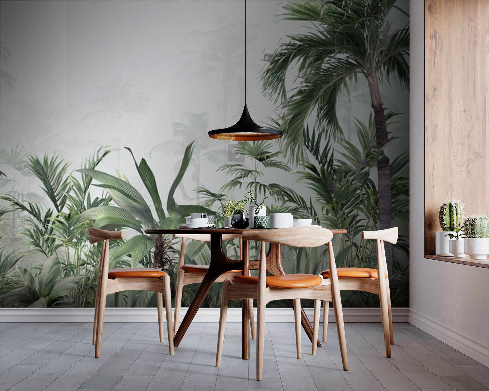 Predstavte si kúsok raja priamo u vás doma. Táto fototapeta “Bujná tropická džungľa v hmle” premení každú miestnosť na pokojný únik vďaka žiarivej zeleni a hmlistému pozadiu. Freska je ideálna na to, aby ste svojmu priestoru dodali nádych prírody, a vyzýva vás, aby ste sa ponorili do tepla tropického pralesa bez toho, aby ste museli opustiť svoj gauč. Predstavte si, ako popíjate kávu vo svojej obývačke a máte pocit, že ste sa ocitli v ďalekej džungli. Ideálne pre každého, kto túži po väčšom dobrodružstve (a niekoľkých palmách) vo svojom každodennom živote. Atmosféra džungle – s lístím zdanlivo šuchotajúcim vo vetre – dodáva dynamiku a trochu tajomna. Nie je to len dekor, je to zážitok, ktorý dokáže premeniť obyčajnú stenu na snový, zelený úkryt. Ideálne do detských izieb, obývačiek alebo dokonca do kúpeľne, ktorá by potrebovala nádych tropického pokoja!