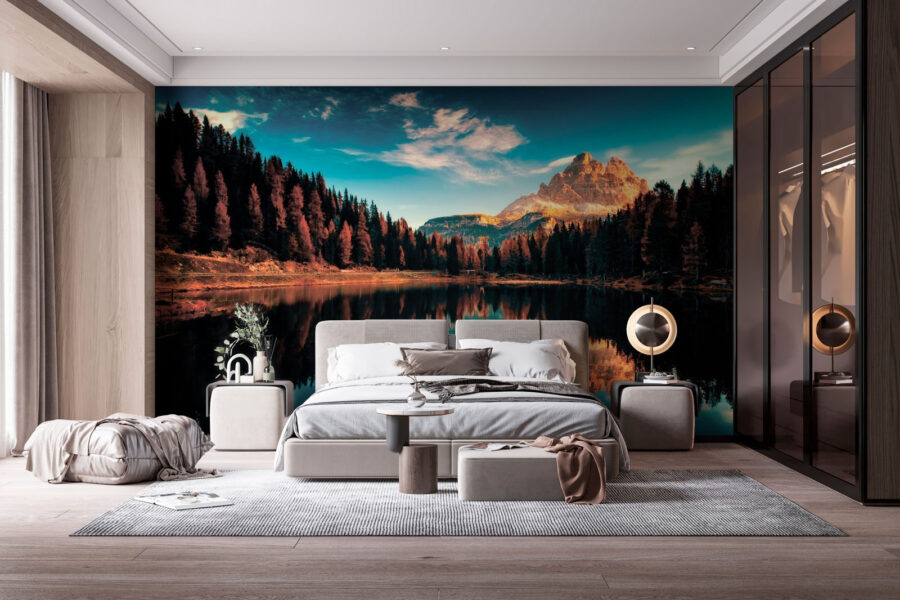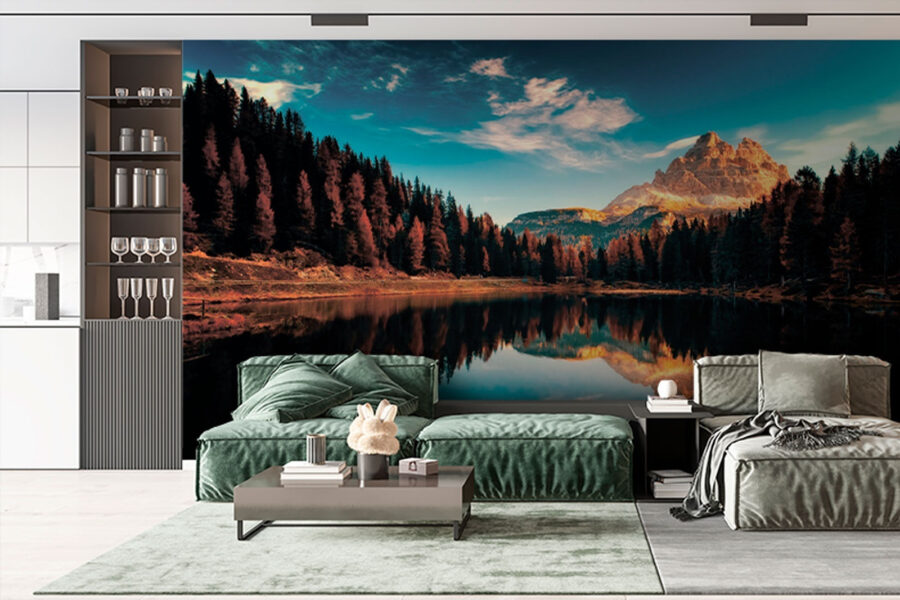 Predstavte si, že vstúpite do útulného priestoru a zrazu vás upúta táto ohromujúca nástenná maľba pokojného jazera obklopeného majestátnymi stromami a horami. Je to ako malá dovolenka na vašej stene! Farby sú tak sýte, že vás prakticky vyzývajú, aby ste si namočili nohy do vody. Predstavte si, že hostíte priateľov a cítite, ako všetkých zaplavuje pocit pokoja, keď sa rozprávajú a popíjajú nápoje, zatiaľ čo hľadia na toto majstrovské dielo. Nie je to len umenie na stene, je to tvorca nálady, výnimočné dielo, ktoré premení každú miestnosť na útočisko v prírode. Nepočujete jemné špliechanie vody a šepot stromov? Táto nástenná maľba prináša kúsok prírody priamo dovnútra – je ideálna na snenie alebo plánovanie vášho ďalšieho dobrodružstva. Kto by to nechcel?