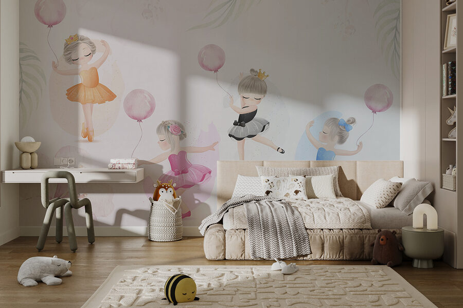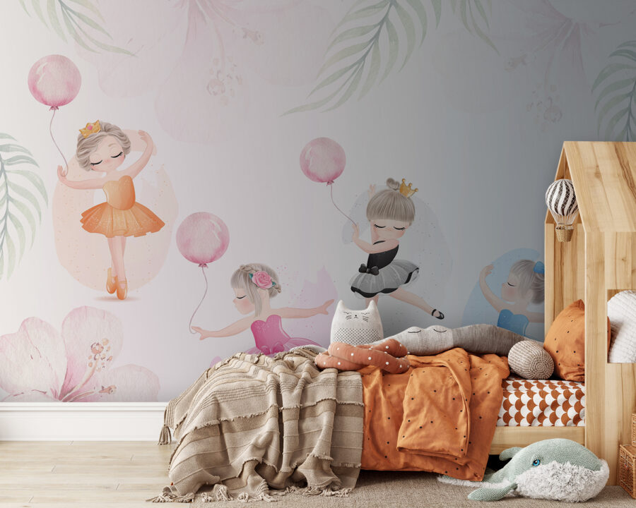 Predstavte si túto rozkošnú nástennú maľbu ako vstup do ríše snov, kde baletky tancujú medzi jemnými akvarelovými kvetmi. Ideálna do detskej izby, má jemné kúzlo, ktoré premení každý priestor na rozmarné útočisko. Tie malé dievčatká v tutu, ktoré sa krútia s balónmi, prinášajú toľko osobnosti – takmer počujete chichotanie a rozprávkový šepot. Je to očarujúci spôsob, ako inšpirovať tvorivosť a radosť s prímesou elegancie. Jemné farby navyše krásne ladia s akýmkoľvek interiérom. Predstavujete si, ako sa vaše dieťatko každý deň zobúdza s týmto obrázkom? Čisté očarenie.