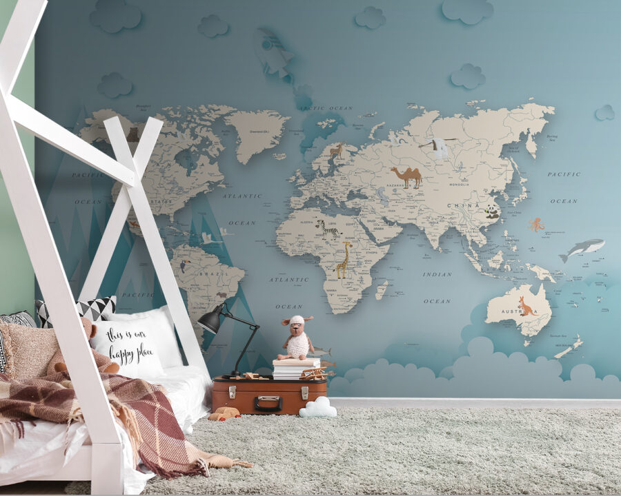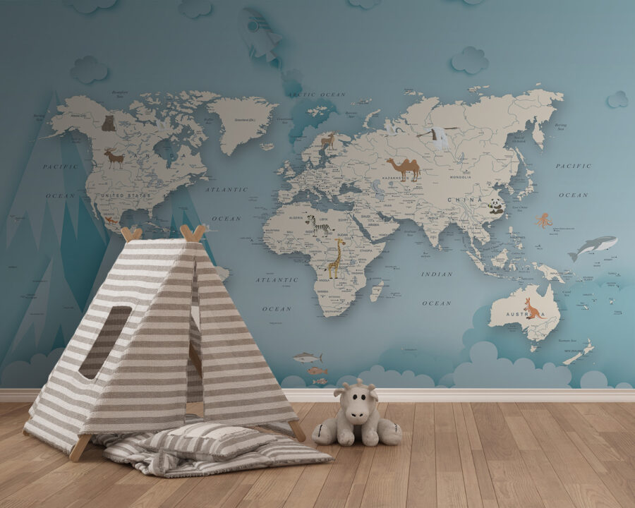Premeňte každú miestnosť na útulné dobrodružstvo s touto očarujúcou fototapetou zobrazujúcou ťavu na rozmarnej mape. Je ideálna pre malých objaviteľov alebo pre každého, kto sníva o ďalekých miestach. Predstavte si, že sa na ňu pozeráte pri popíjaní horúceho kakaa a plánujete ďalšiu imaginárnu cestu okolo sveta. Jemné farby a hravé ilustrácie vzbudzujú zvedavosť, takže sa skvele hodí na podnietenie rozhovorov o geografii alebo cestovaní. Navyše dodá nudným stenám trochu zábavy. Prečo nepriniesť do svojho priestoru pocit putovania?