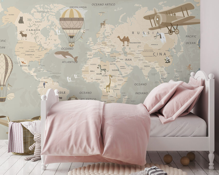 Predstavte si, že pri každom vstupe do miestnosti vstúpite do sveta dobrodružstva. Táto nástenná maľba teplovzdušných balónov vznášajúcich sa nad nádherne ilustrovanou mapou nabáda k snívaniu o vzdialených krajinách a magických cestách. Vďaka žiarivým farbám a očarujúcim detailom je to ako mať mini dovolenku priamo na stene. Predstavte si deti alebo priateľov zhromaždených okolo, ako ukazujú na miesta, ktoré chcú navštíviť, alebo spomínajú na absolvované výlety. Nie je to len dekorácia, ale aj podnet na rozhovor! Táto nástenná maľba, ktorá je ideálna do herne, kancelárie alebo útulného čitateľského kútika, prináša radosť a zvedavosť, vďaka čomu sa každý priestor bude cítiť trochu rozmarnejšie. Kto by sa nechcel vznášať na balóne, aspoň vo svojej fantázii?