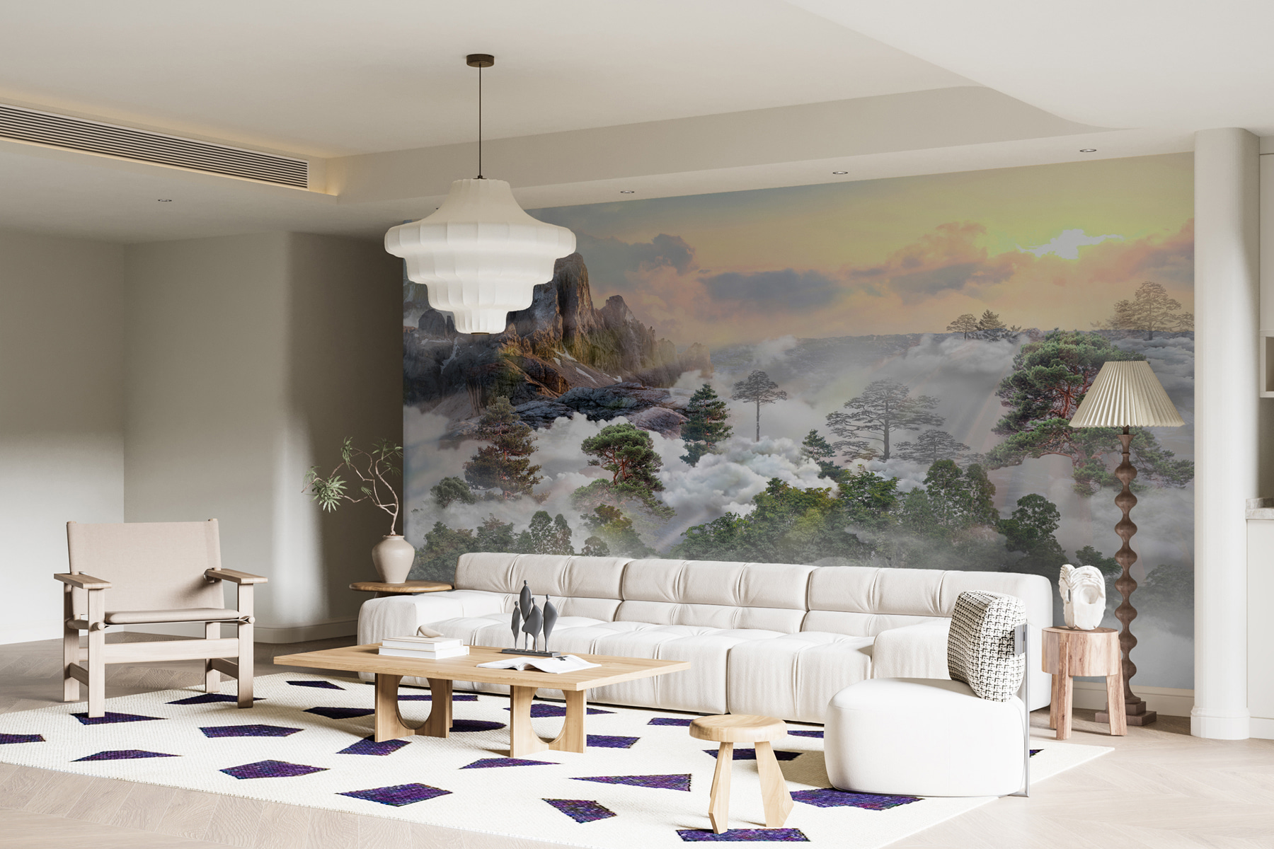 Predstavte si, ako popíjate kávu pod týmito nadýchanými oblakmi a nechávate svoju myseľ putovať do vzdialených krajín. Upokojujúce farby vytvárajú pokojnú atmosféru, ktorá je ideálna na snívanie alebo na schúlenie sa pri dobrej knihe. Nie je to len stena, je to celá nálada. Táto nástenná maľba pozýva do interiéru teplo a kvapku krásy prírody a zaiskrí radosťou zakaždým, keď sa na ňu pozriete.