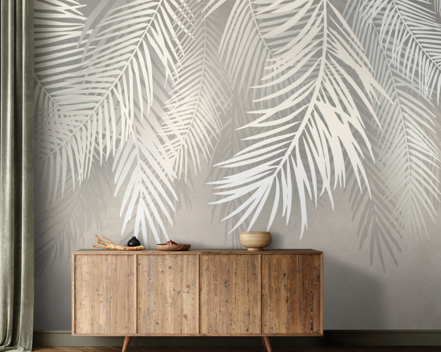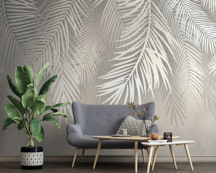 Premeňte akúkoľvek miestnosť na pokojné útočisko s touto ohromujúcou nástennou maľbou s bielymi listami na jemne sivom pozadí. Predstavte si, že sa každý deň prebúdzate za jemného šepotu tropickej atmosféry. Je to ako mať malú džungľu priamo na stene, ale bez potreby polievacej kanvice – takže nie je potrebný žiadny zelený palec! Jemné kontrasty vytvárajú upokojujúcu atmosféru, ideálnu na relax po dlhom dni. Či už ide o útulný kútik alebo priestrannú obývačku, táto tapeta vnáša prírodu dovnútra, podnecuje konverzácie a inšpiruje k lenivým popoludniam stráveným snívaním. Je to dekorácia s nádychom mágie a štipkou elegancie, ktorá mení obyčajné na mimoriadne. Kto by povedal, že listy môžu byť tak šik?