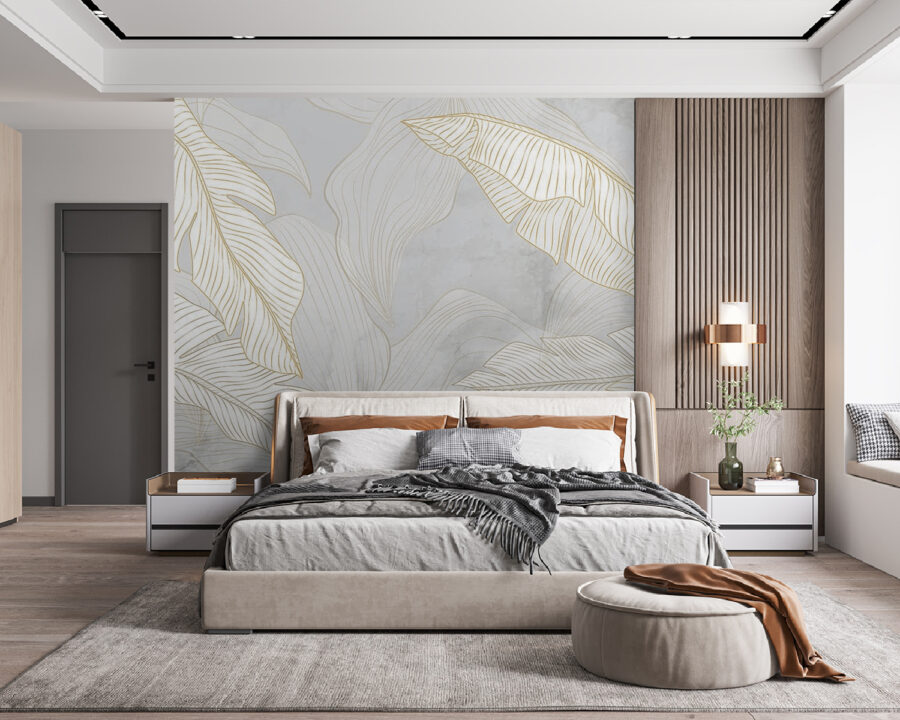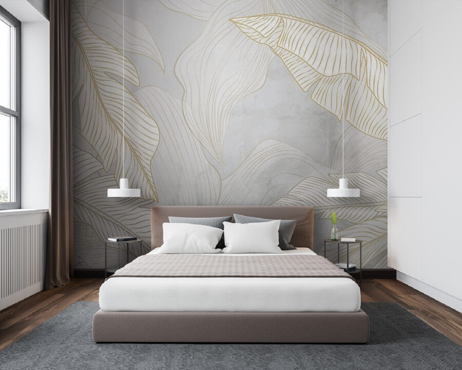 Predstavte si, ako sa vaša izba premení na pokojnú svätyňu s touto fototapetou “Biele a oranžové listy na sivom pozadí”. Je to ako vstúpiť každý deň do umeleckej galérie. Elegantný dizajn palmových listov dodáva tejto fototapete jemnú tropickú atmosféru, zatiaľ čo jemné sivé pozadie ju udržiava v štýle a pokoji. Je to dokonalá kombinácia výrazného a jemného.