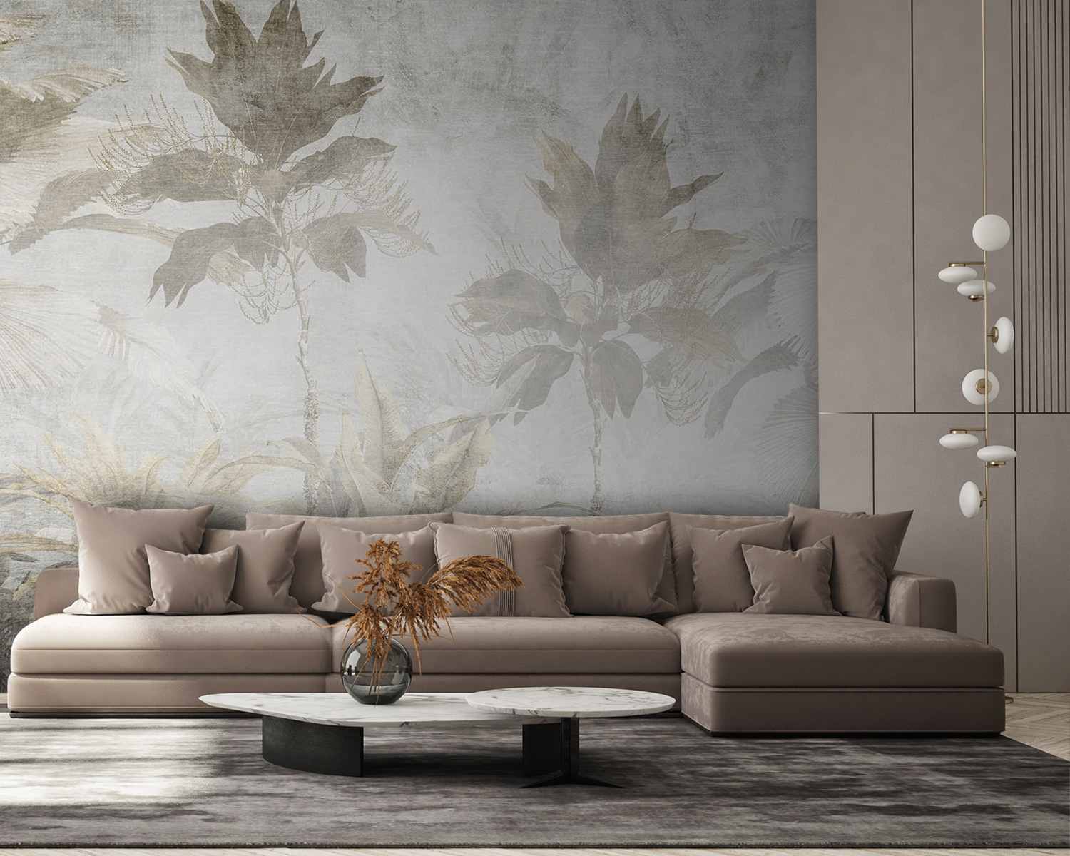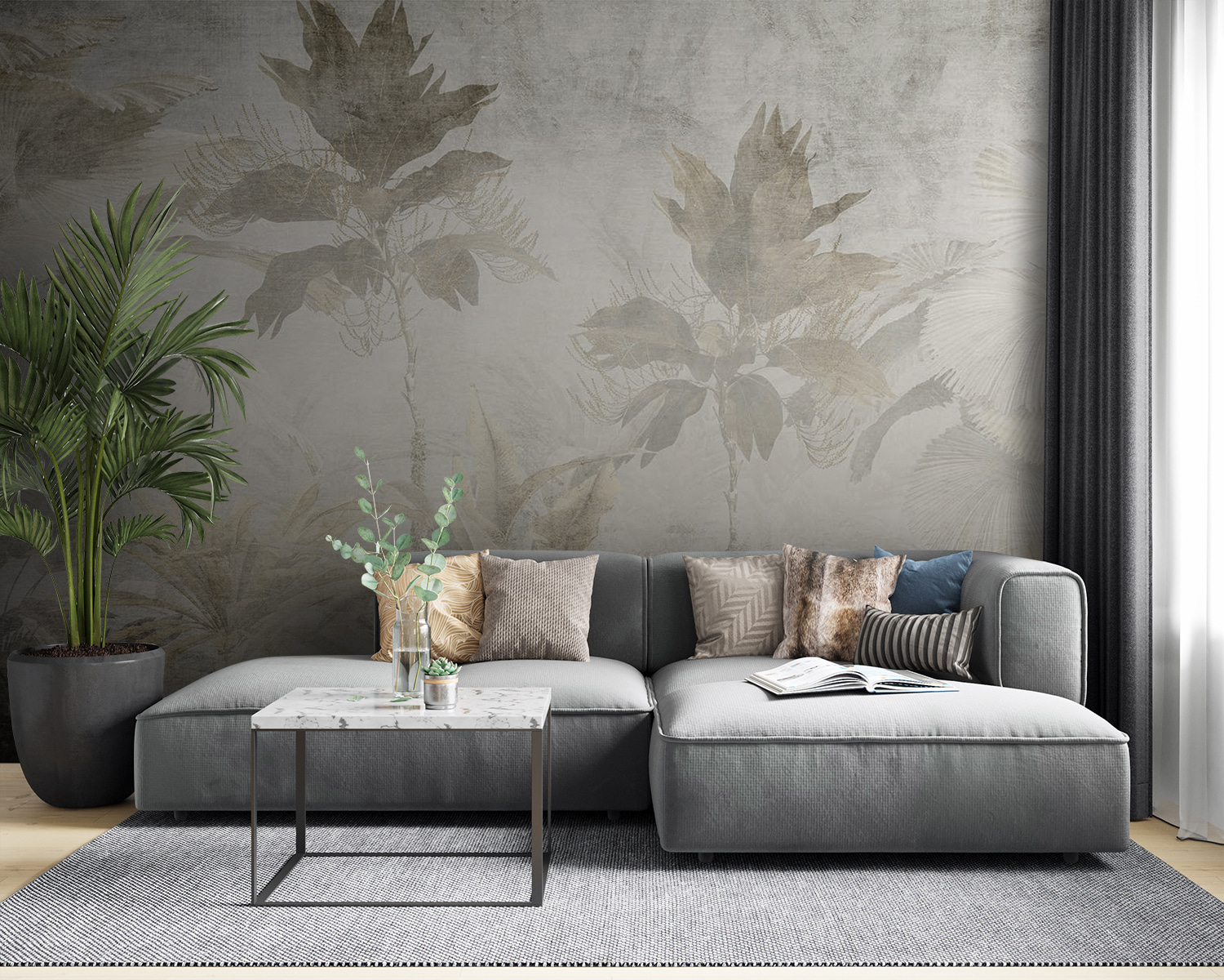 Táto fototapeta sa bez námahy hodí do každej miestnosti, či už je to vaša útulná obývacia izba, pokojná spálňa, alebo dokonca elegantná kaviareň. Tlmené tóny vytvárajú takú pokojnú atmosféru, ako jemný šepot v rannom vánku. A tie palmové listy? Dodávajú exotický nádych, vďaka ktorému sa budete cítiť, akoby ste sa preniesli do tropického raja.