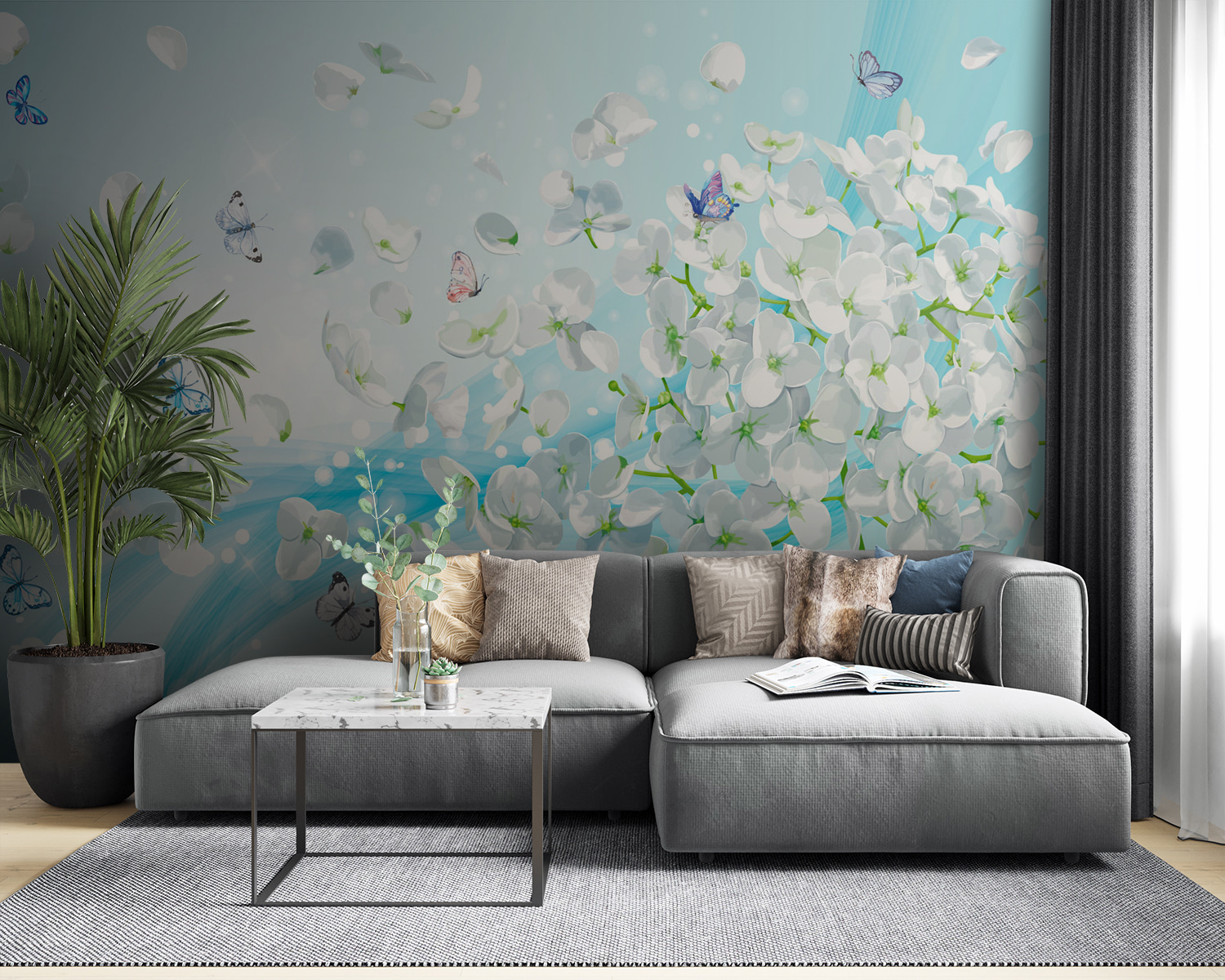 Transform any room with the enchanting “Wall Murals White Flowers with Butterflies Flying.” Imagine stepping into a serene garden, where delicate blossoms dance and butterflies flutter through the air—a little slice of nature right at home. The gentle colors bring a calming vibe, perfect for a cozy reading nook or a lively living room. It’s like fresh spring air! But hey, don’t worry about watering these flowers; they’re the low-maintenance kind! Whether you’re hosting friends or enjoying a quiet moment, this mural adds a touch of elegance and whimsy. Just picture it: butterflies whispering sweet nothings, and you sipping coffee, feeling like you’re in a dreamy bliss. It’s more than decor; it’s an experience!