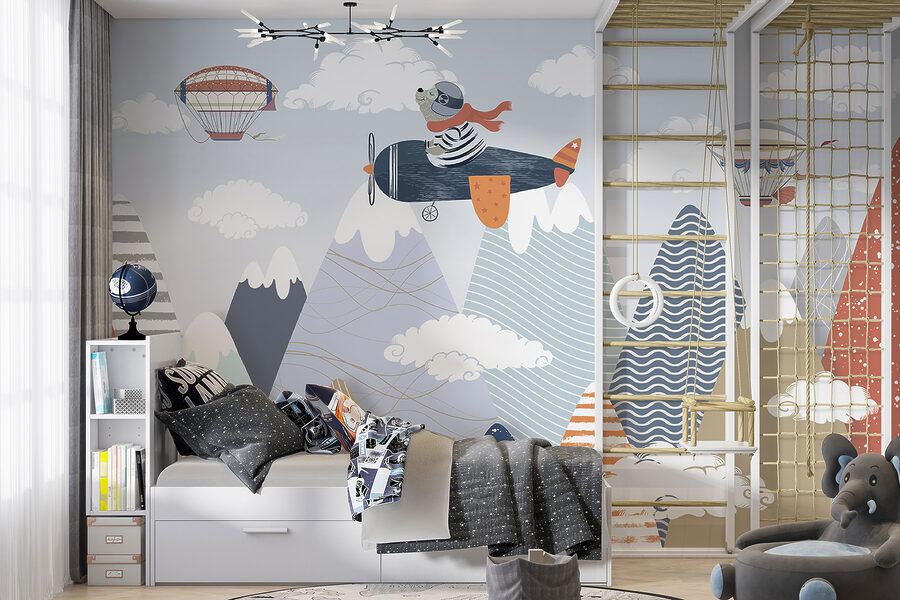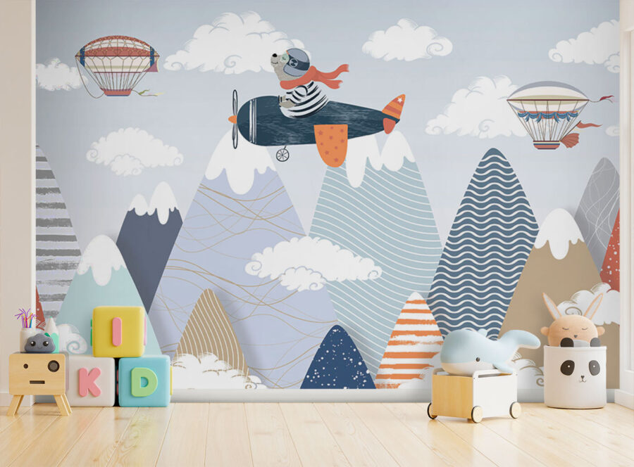 Predstavte si, že vojdete do detskej izby a privíta vás rozmarná scéna ako z dobrodružného príbehu! Táto fototapeta s veselými teplovzdušnými balónmi plachtiacimi v nadýchaných oblakoch nad farebnými abstraktnými horami dodá každému priestoru pocit kúzla. Je ideálna na rozprúdenie predstavivosti vášho dieťaťa – možno sa bude cítiť, akoby pilotovalo vlastnú výpravu do neba. Teplé, útulné farby a hravé vzory prinášajú skutočné čaro. Táto nástenná maľba je ideálna do detských izieb alebo herní, nie je to len dekorácia, ale aj portál k nekonečným dobrodružstvám! Snívajte o veľkých veciach, plaťte sa vysoko!
