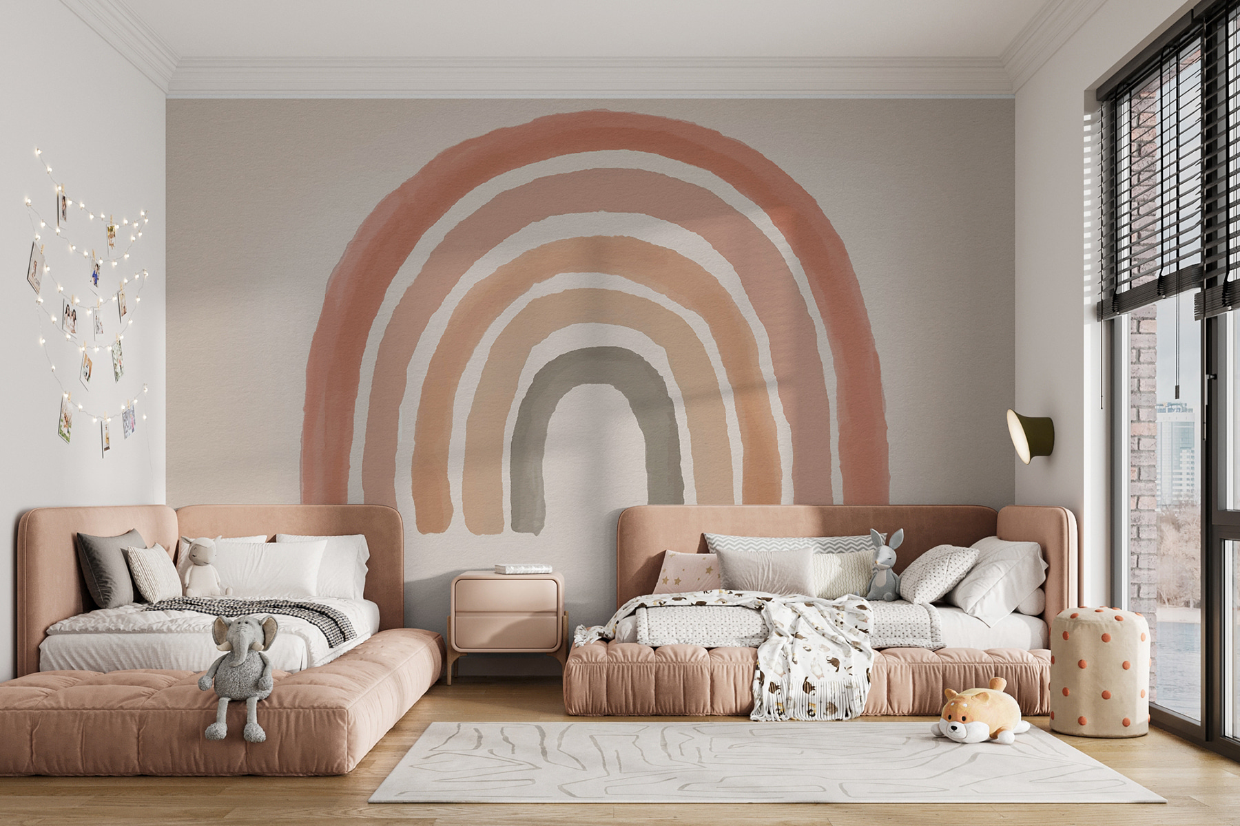 Navyše je celkom univerzálny, nemyslíte? Vyžaruje hlavné zasnené vibrácie bez toho, aby bola príliš hlasná, takže je skvelou kulisou pre rozprávky alebo tvorivé hry. A povedzme si úprimne, kto by sa nechcel každý deň pozerať na veselú dúhu? Táto nástenná maľba je o tom, že do vášho domova vnesie šarm a radosť, jeden ťah štetcom za druhým.