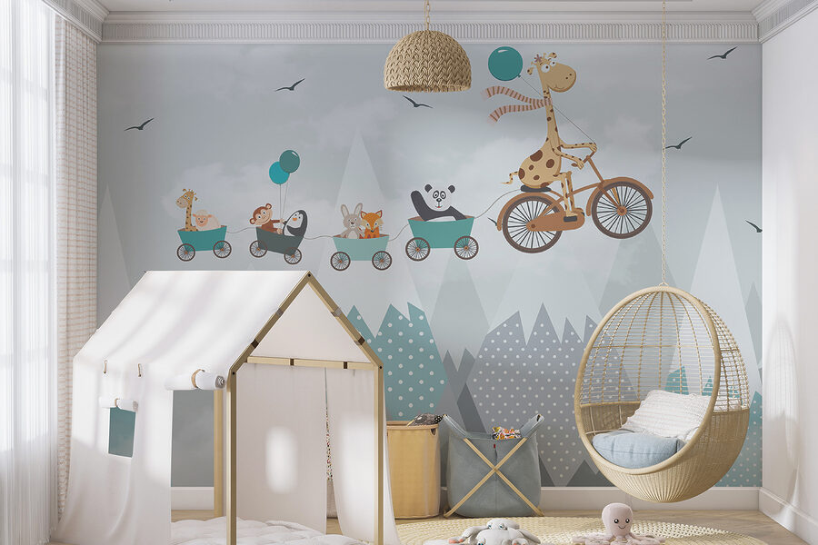 Chcete do detskej izby vniesť trochu rozmarnosti? Pozrite si “Nástenné maľby Žirafa jazdí na bicykli” – je to ako rozkošný denný sen rozprsknutý po ich stene. Táto zábavná nástenná maľba zobrazuje dobrodružnú žirafu, ktorá šliape do pedálov cez zasnenú krajinu a ťahá so sebou sprievod rozkošných zvieratiek. Jemné pastelové farby a hravé výjavy prenesú vaše dieťatko do sveta fantázie, takže je ideálna do detských izieb alebo herní. Predstavte si, ako sa príbehy pred spaním menia na neuveriteľné cesty s touto kulisou. Navyše tie očarujúce bodky a hory? Sú jednoducho príliš roztomilé. Táto nástenná maľba nie je len dekoráciou – je to vstupenka na dobrodružstvo každý deň.
