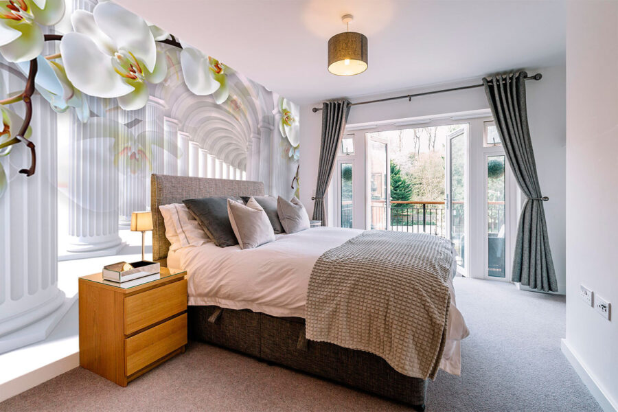 Premeňte akúkoľvek miestnosť na zasnený únik s dizajnom nástennej maľby White Orchids Line Majestic Columns. Predstavte si, že vstúpite do slnkom zaliatej chodby plnej elegantných stĺpov a jemných orchideí. Je to ako priniesť si domov kúsok raja, bez letu! Svieže, svieže vibrácie vám zdvihnú náladu, zatiaľ čo tieto nádherné kvety vám pošepkajú: “Zaslúžiš si to.” Ideálne pre útulné zákutia alebo výraznú stenu, pôsobí ako jemné objatie od prírody. Len si predstavte šálku čaju v ruke, ako sa kocháte krásou – je ťažké neusmievať sa!