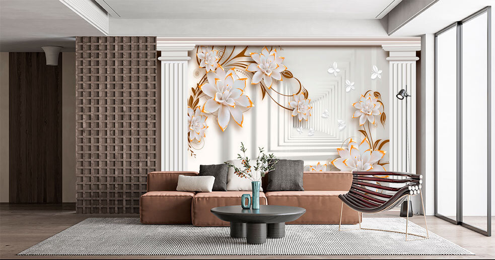 Premeňte svoj priestor na rozkvitnutý raj s nástennou maľbou Floral Elegance s architektonickými stĺpmi. Predstavte si to: vstúpite do miestnosti a privítajú vás nadrozmerné kvety, ktoré akoby tancovali po stenách a priťahovali vás svojím jemným pôvabom. Jemne tlmené pozadie nechá tieto kvety vyniknúť a urobí z nich hviezdy predstavenia – akoby sa uchádzali o pozornosť na záhradnej párty.