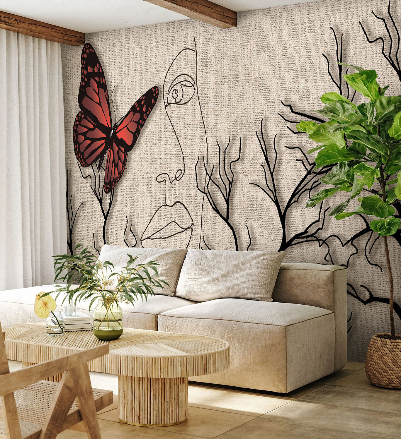 Transform your space with this stunning wall mural featuring a butterfly dancing near a woman’s face, wrapped in delicate branches. It’s not just art; it’s a statement—like having a serene moment captured on your wall. Think about waking up to this beauty every day; the vibrant butterfly brings a jolt of life, while the gentle expressions evoke a sense of calm. Perfect for a cozy living room or a creative nook, it invites curiosity and conversation. Plus, who doesn’t love butterflies? They’re like nature’s little artists, adding charm and whimsy. Embrace a vibe that’s uniquely yours!