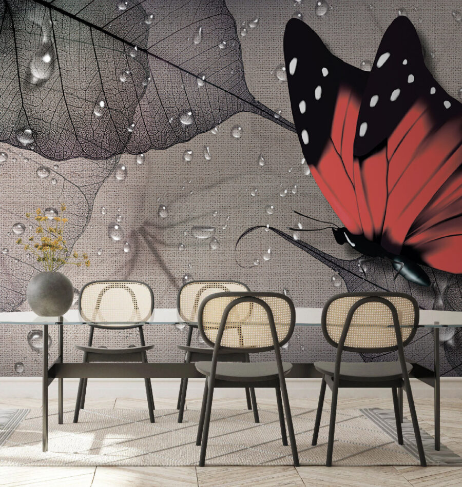 Premeňte akúkoľvek miestnosť na pokojné útočisko s očarujúcou nástennou maľbou „Motýľ na liste“. Predstavte si to: vojdete dnu a BAM! Na liste jemne pokropenom kvapkami dažďa sedí nápadný motýľ. Je to druh umeleckého diela, ktoré vás prinúti zastaviť sa, usmiať sa a možno aj snívať o lietaní v pokojnej záhrade.