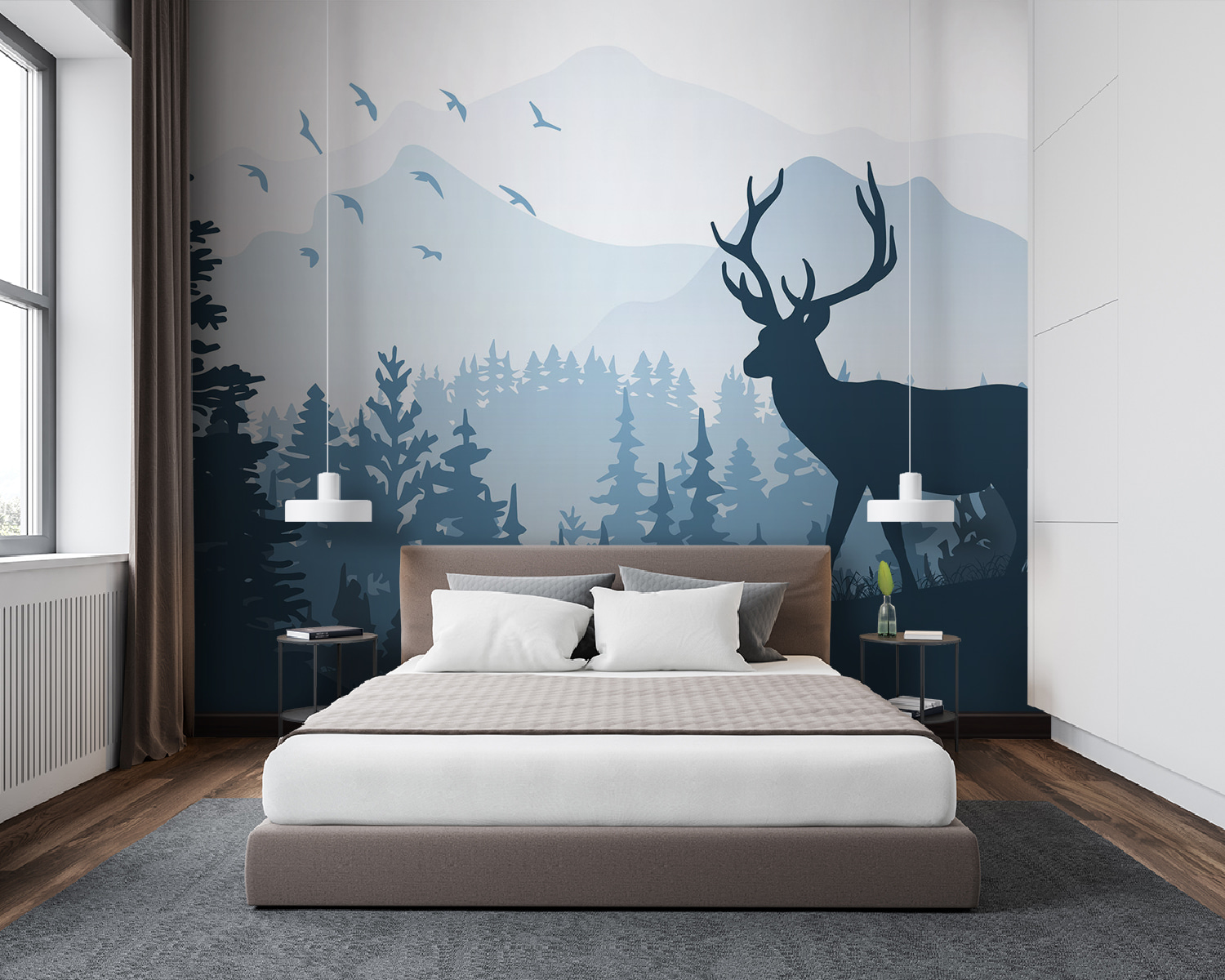 Nie je táto nástenná maľba jednoducho úžasná? S názvom “Silueta jelenieho parožia” akoby ste si preniesli pokojný kúsok prírody priamo do svojej obývačky. Predstavte si, že vás každé ráno víta tento majestátny jeleň uprostred mora upokojujúcej modrej a zelenej – je to ako výjav priamo z rozprávkového lesa. Je tiež súčasťou niekoľkých celkom zaujímavých kategórií: Pre začiatok: nástenné maľby so zvieratami a dizajnové tapety.