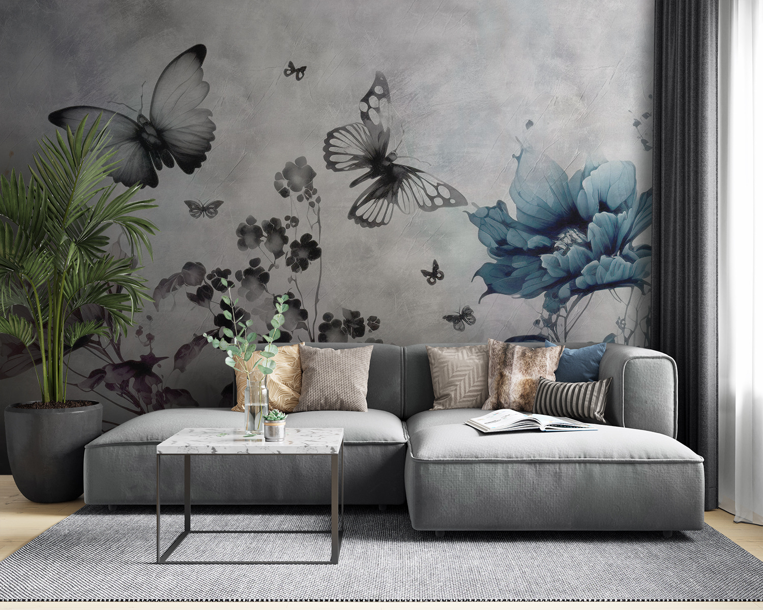 Premeňte svoj priestor pomocou tejto očarujúcej nástennej maľby motýľov tancujúcich vo vzduchu. Predstavte si, že sa prebúdzate a tieto krehké stvorenia poletujú okolo vás a dodávajú vašej izbe šarm a rozmar. Jemný akvarelový dizajn nádherne spája odtiene modrej a sivej farby, čím vytvára pokojnú a zasnenú atmosféru. Predstavte si útulný kútik na čítanie alebo pokojnú spálňu, kde táto nástenná maľba dokáže oživiť steny. Je to ako priniesť do interiéru malý kúsok prírody – bez chrobákov! Táto nástenná maľba nie je len dekoráciou, je to každodenná dávka inšpirácie, ktorá každému pripomenie, aby prijal krásu v malých veciach. Ideálna pre tých, ktorí milujú jedinečný nádych!