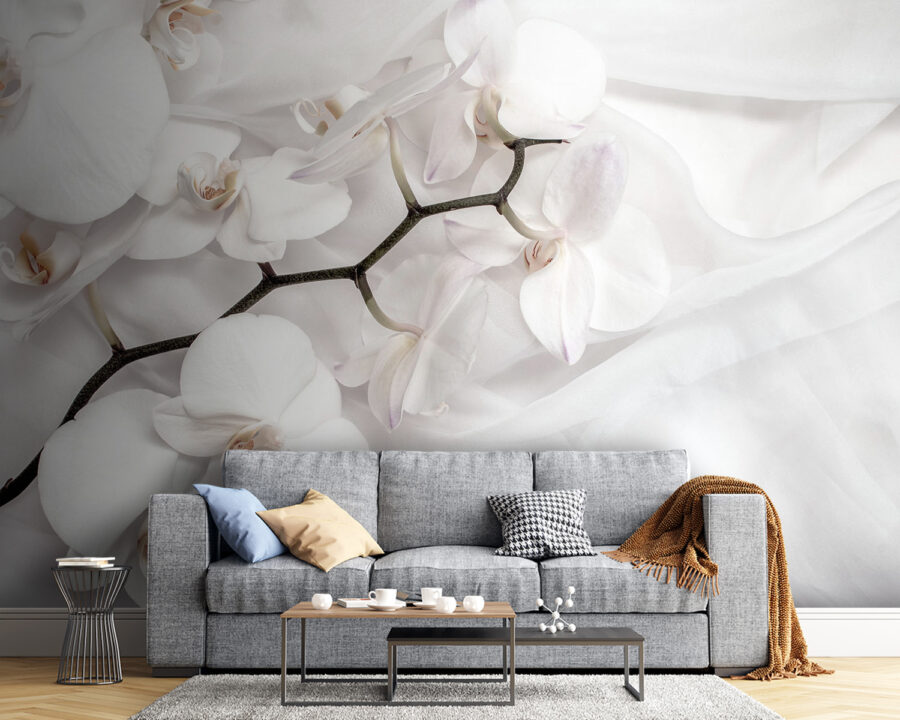 Premeňte akúkoľvek miestnosť s touto úžasnou nástennou tapetou s jemnými bielymi orchideami na jemnom bielom textilnom pozadí. Predstavte si, že váš priestor pôsobí ako pokojná záhradná oáza – ideálna pre dni, keď chcete uniknúť chaosu života. Elegantné kvety dodávajú pocit pokoja, takže je ťažké sa neusmiať zakaždým, keď okolo nich prechádzate.