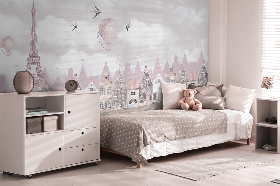 Predstavte si, že vojdete do miestnosti a privíta vás očarujúci pohľad na vtáky vznášajúce sa na rozmarnej oblohe, jemne sa vznášajúce teplovzdušné balóny a očarujúce strechy ako z rozprávky. Táto nástenná maľba “Vták letiaci na oblohe” túto fantáziu oživí. Je ideálna do detskej izby, podnecuje predstavivosť a napĺňa priestor snovou atmosférou. Vďaka jemným pastelovým farbám a jemným detailom to nie je len fototapeta, ale príbeh, do ktorého môžete vstúpiť. Na pozorovaní týchto vtáčikov je niečo také upokojujúce, je to ako jemný vánok pre dušu. Navyše, kto by nechcel mať na stenách nádych kúzla? Táto nástenná maľba je rozkošnou zmesou elegancie a hravosti – ideálna na vytvorenie útulnej, očarujúcej atmosféry v izbe každej dcéry.