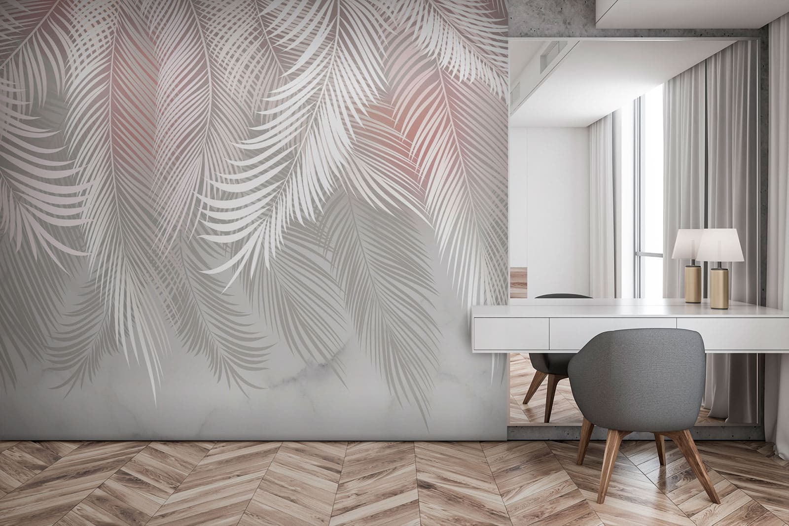 Ahoj! Pozrite si túto úžasnú nástennú maľbu s názvom “Perie v kaskádach s elegantným vzorom”. Je to, akoby sa príroda rozhodla usporiadať vo vašej obývačke elegantnú párty. Pernaté palmové listy sa znášajú v uvoľnenom, ale sofistikovanom dizajne. Predstavte si, že sa každý deň prebúdzate do tejto pokojnej atmosféry. Jemné detaily vo vás takmer vyvolávajú túžbu natiahnuť k nim ruku a dotknúť sa ich – jemné a bezstarostné, viete?