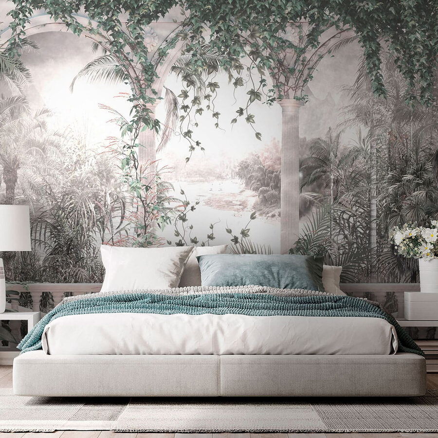 Vstúpte do pokojného úniku s touto nástennou maľbou, ktorá pozýva do vášho domova bujné liany a ladné oblúky. Predstavte si, ako popíjate rannú kávu, keď slnečné svetlo preniká cez listnatú zeleň a vytvára pokojnú atmosféru, ktorá pôsobí osviežujúco a nadčasovo. Jemné pozadie naznačuje pokojnú krajinu, vďaka ktorej ľahko zabudnete na vonkajší svet. Táto nástenná maľba nie je len dekoráciou na stenu, je to minidovolenka, ktorá čaká na to, až sa stane. Je ideálna na premenu nudnej miestnosti na útulný kútik, dodáva vrstvu tepla a šarmu, ktorý podnecuje predstavivosť.