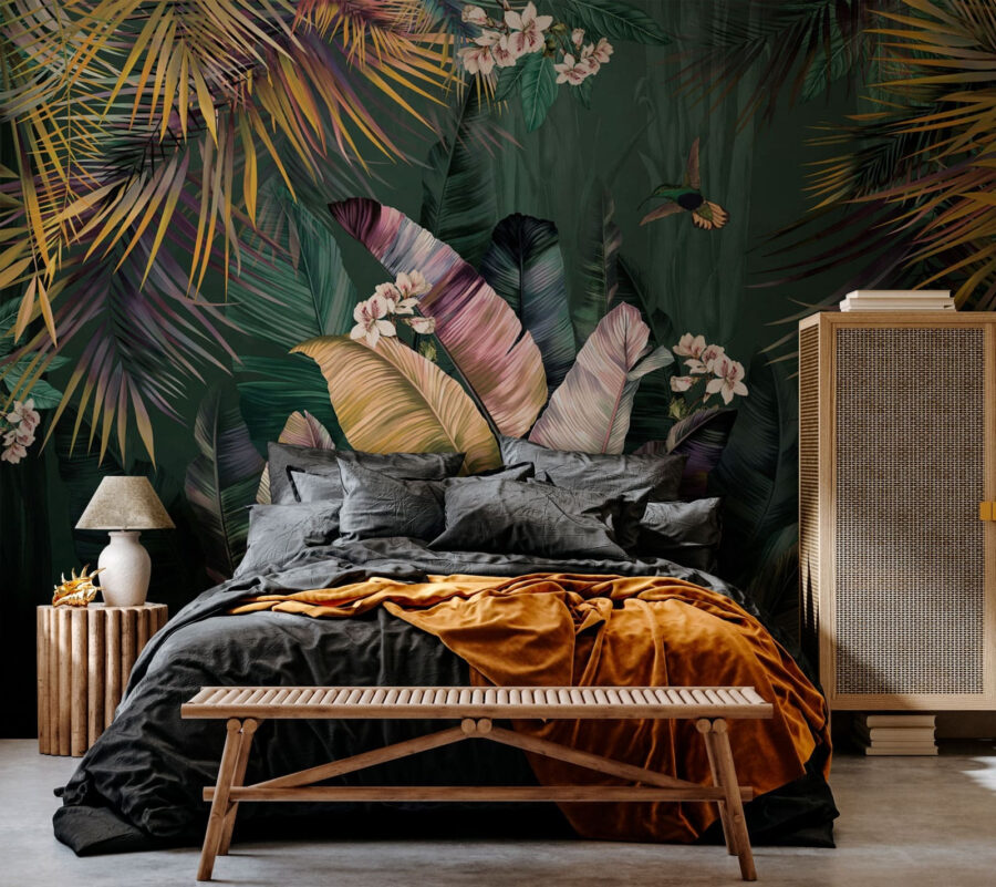 Predstavte si, že prídete domov do svojho vlastného tropického raja s touto úžasnou nástennou maľbou “Kolibrík letiaci vo vzduchu” na stene. Žiarivá zeleň, svieže lístie a náznaky jemných kvetov vytvárajú atmosféru bujnej džungle, vďaka ktorej budete mať pocit, že ste vstúpili do pokojného dažďového pralesa. A ten očarujúci kolibrík, ktorý poletuje okolo? Pridáva kúzlo – ako drobný, radostný tanec prírody priamo vo vašej obývačke.