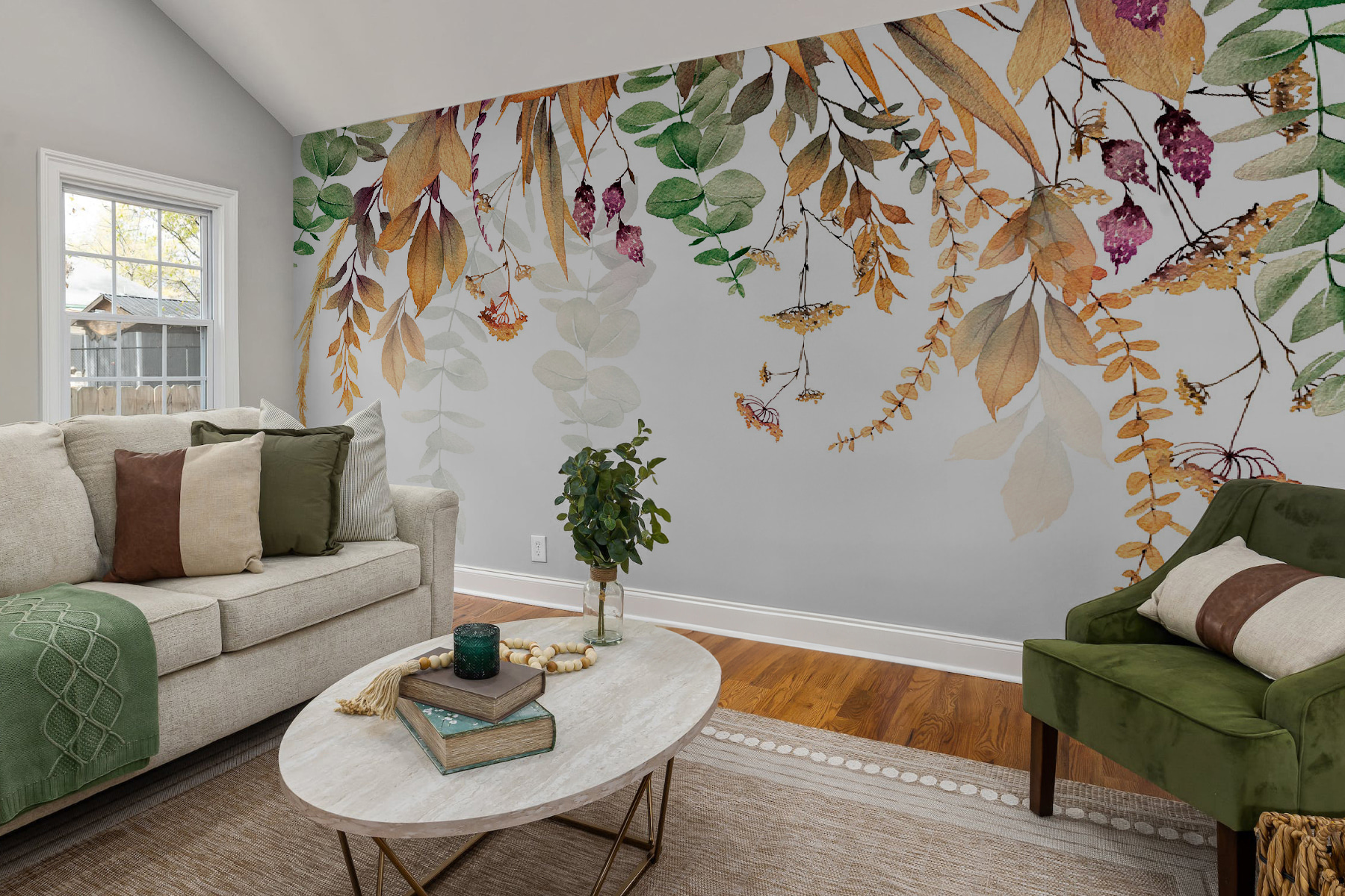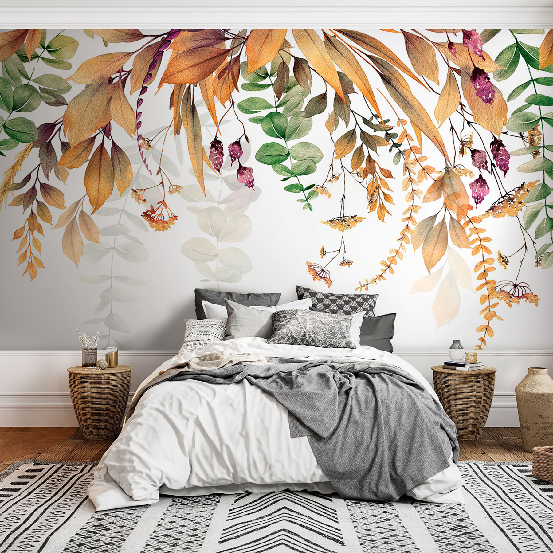 Premeňte svoj priestor pomocou tejto úžasnej nástennej maľby so sviežimi zelenými listami na žiarivo bielom pozadí. Je to ako preniesť kúsok prírody do interiéru, bez otravného hmyzu. Predstavte si, že sa prebúdzate s týmto žiarivým dizajnom, pri ktorom každý pohľad pôsobí ako malý únik do pokojnej záhrady. Bez námahy rozžiari každú miestnosť a rozprúdi tie útulné, tvorivé vibrácie. Táto nástenná maľba je ideálna do obývacej izby, spálne alebo dokonca do útulného čitateľského kútika, kde dodáva nádych rozmarnosti a tepla. Kto by povedal, že príroda môže vyzerať tak elegantne? Prijmite pokoj a nechajte svoje steny rozprávať príbeh!