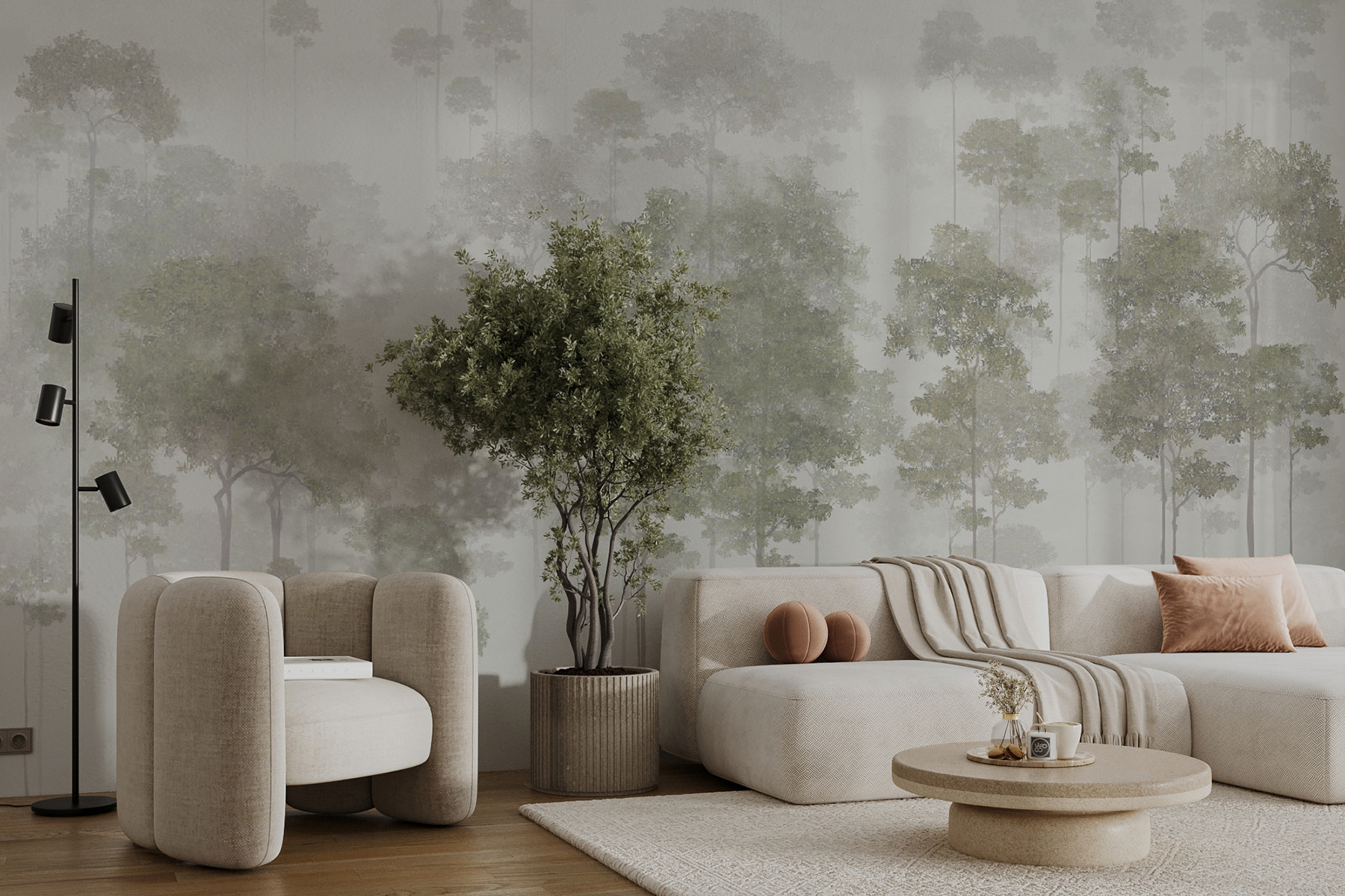 Predstavte si, že pri každom vstupe do miestnosti vstúpite do pokojného lesa. Táto nástenná maľba stromov v hmlistom lese to dokáže. Vďaka hmlistému pozadiu máte pocit, akoby bola príroda jemne zabalená do útulnej prikrývky, ktorá nabáda k pocitu pokoja a mieru. Viete si predstaviť, ako sa pri mäkkom osvetlení schúlite s knihou? Alebo možno predstieranie popíjania kávy pri sledovaní lístia tancujúceho vo vánku – priamo z vašej obývačky? Je to dokonalý doplnok moderného priestoru alebo aj útulného zákutia. Vneste doňho atmosféru vonkajšieho prostredia a nechajte pokoj pozdvihnúť vašu každodennú náladu.