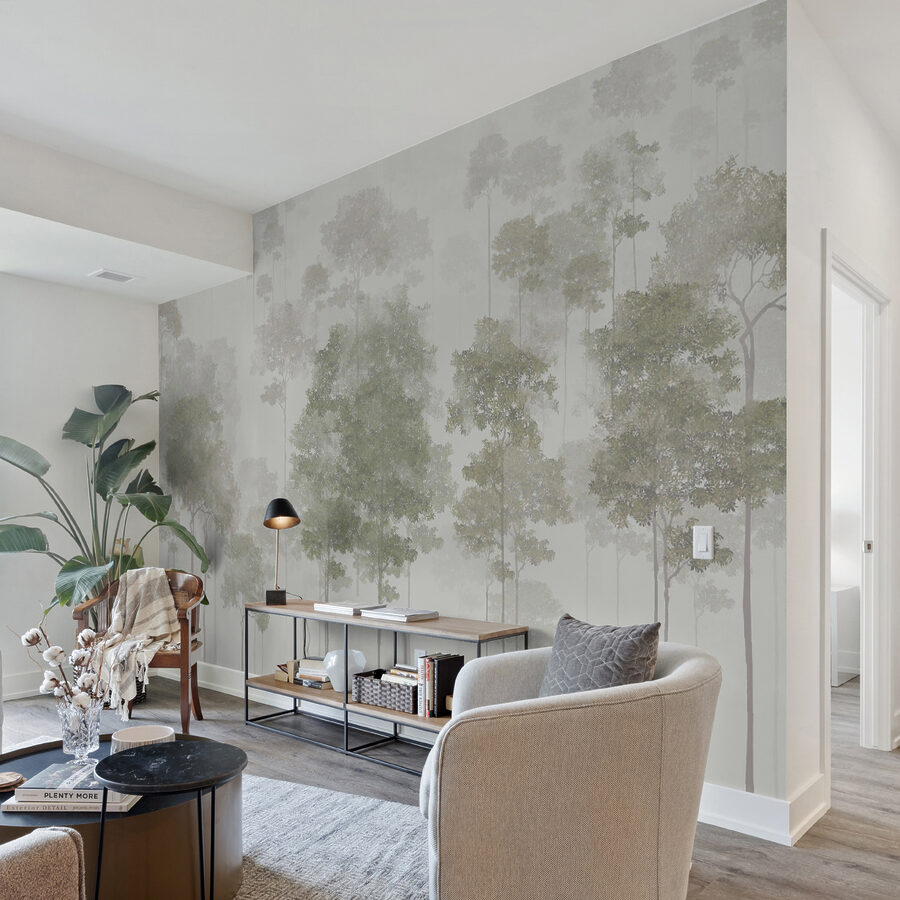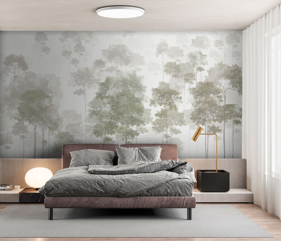 Predstavte si, že pri každom vstupe do miestnosti vstúpite do pokojného lesa. Táto nástenná maľba stromov v hmlistom lese to dokáže. Vďaka hmlistému pozadiu máte pocit, akoby bola príroda jemne zabalená do útulnej prikrývky, ktorá nabáda k pocitu pokoja a mieru. Viete si predstaviť, ako sa pri mäkkom osvetlení schúlite s knihou? Alebo možno predstieranie popíjania kávy pri sledovaní lístia tancujúceho vo vánku – priamo z vašej obývačky? Je to dokonalý doplnok moderného priestoru alebo aj útulného zákutia. Vneste doňho atmosféru vonkajšieho prostredia a nechajte pokoj pozdvihnúť vašu každodennú náladu.