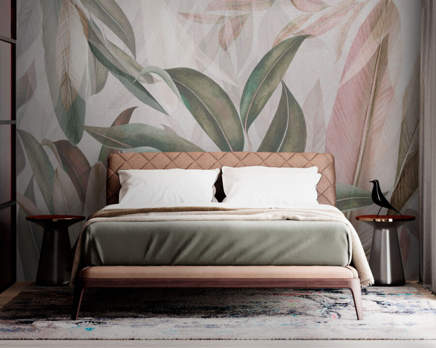Premeňte akúkoľvek miestnosť na pokojnú oázu s nástennou maľbou “Elegantné listy sa prelínajú s pôvabom”. Predstavte si, že vstúpite do priestoru, kde sa jemná listová zeleň a nežné ružové tóny plynule prelínajú a zahaľujú vaše steny do hrejivého objatia. Je to ako preniesť kúsok vonkajšieho prostredia dovnútra, bez hmyzu (vďakabohu). Plynulý dizajn vytvára upokojujúcu atmosféru, ktorá je ideálna na lenivé popoludnia alebo príjemné večery. Hostia sa sem zatúlajú a pocítia, ako ich obklopuje pokoj, akoby narazili na tajnú záhradu. Je to umenie, ktoré nabáda k snívaniu a inšpiruje k pohode. Tak prečo nenechať tieto steny hovoriť a nepremeniť svoj domov na listnaté útočisko?