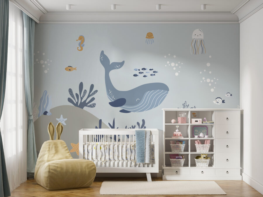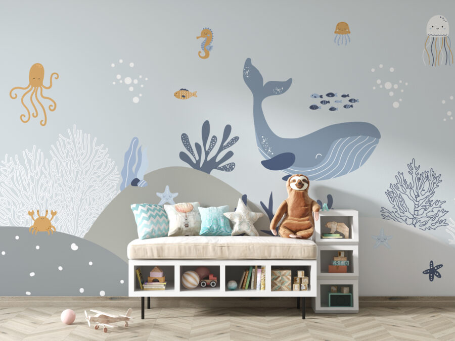 Pridaním tejto nástennej maľby by sa príbehy o podmorských priateľoch pred spaním mohli stať ešte vzrušujúcejšími. Rozkošné chobotnice, veľryby a hviezdice akoby takmer ožili a pozývajú deti na nespočetné dobrodružstvá plné fantázie. Jemné farby a priateľské zvieratká navyše vytvárajú dokonalú kulisu na spanie aj na hranie.