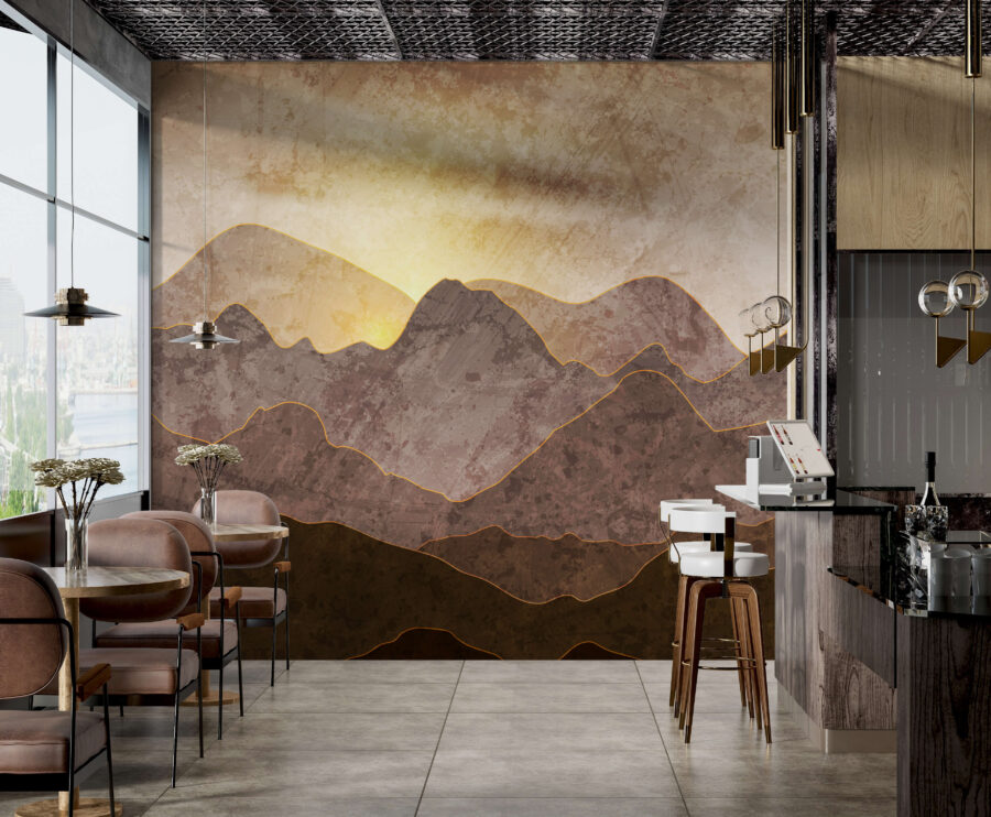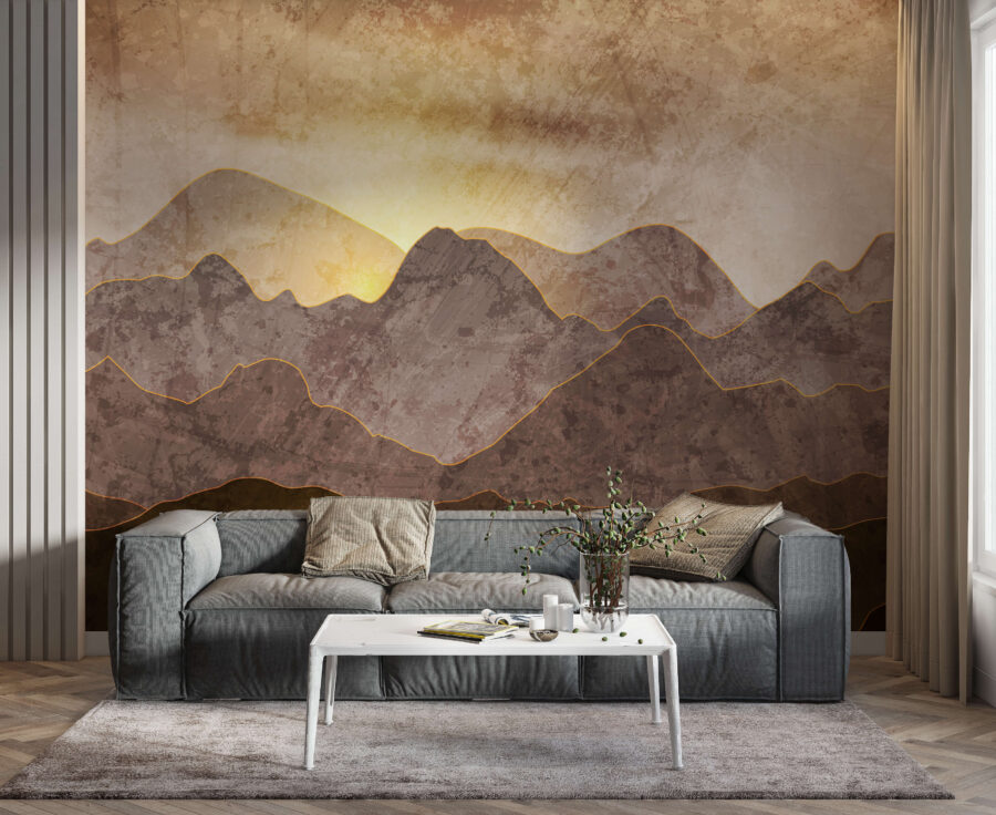Pozrite si túto úžasnú nástennú maľbu s názvom “Nástenná maľba hôr so žltými líniami”. Je to ako mať svoje osobné pokojné útočisko priamo na stene. Jemná zmes zemitých tónov a týchto výrazných žltých línií oživí každý priestor a dodá mu túto teplú, príjemnú atmosféru.