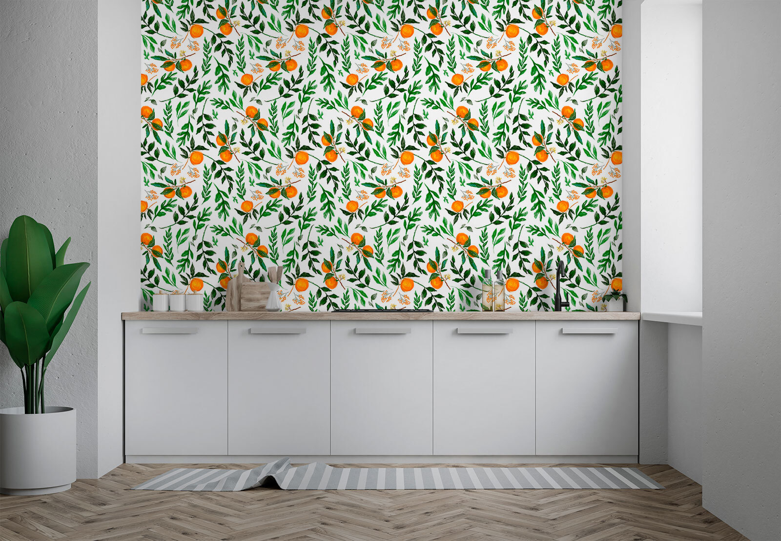 Predstavte si, že sa každé ráno prebúdzate s kvapkou citrusovej radosti vďaka nástennej maľbe “Vzor pomarančov a listov”. Táto dizajnová tapeta vnesie do každej miestnosti svieži a energický nádych. Predstavte si šťavnaté pomaranče vyskakujúce na pozadí sviežich zelených listov – je to ako mať slnečný háj priamo na stene. Perfektne sa hodí do kuchyne, obývačky alebo akéhokoľvek priestoru, ktorý potrebuje nádych kúzla inšpirovaného prírodou.