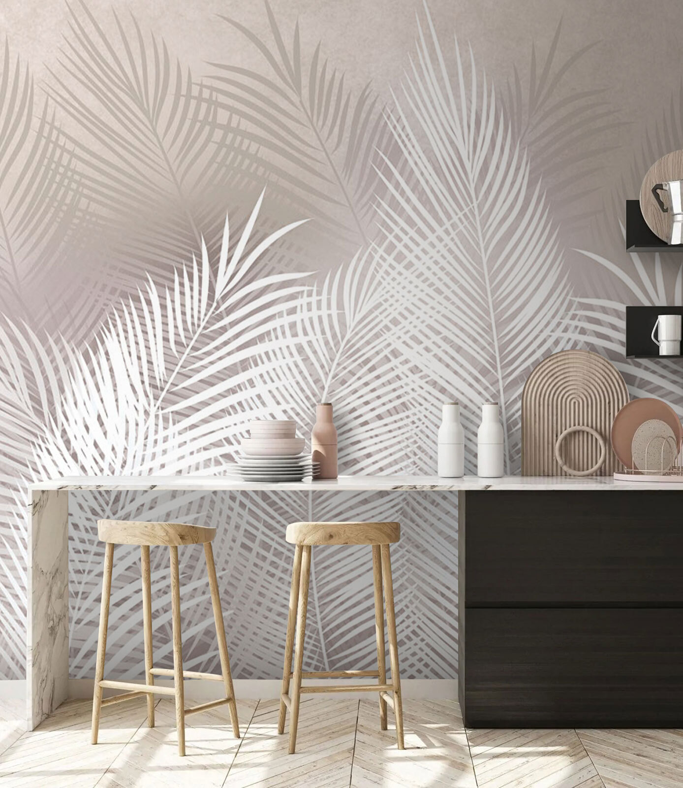 Ahoj! Pozrite si túto úžasnú nástennú maľbu s názvom “Elegantné biele palmové listy”. Úprimne, je to ako mať pokojnú tropickú oázu priamo vo svojej obývačke. Predstavte si tie vzdušné, jemné listy, ktoré sa váľajú na stene a svojím ladným kolísaním priam nabádajú k čistému relaxu. Perfektne sa hodí do každého moderného priestoru, prináša štipku elegancie prírody a nádych pobrežnej atmosféry bez piesočnatých prstov.