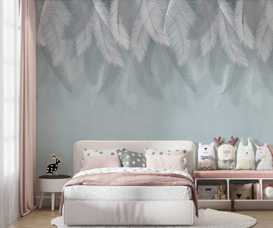 Predstavte si, že vstúpite do útulnej miestnosti a privítajú vás jemné biele pierka vznášajúce sa na jemne modrom pozadí. Táto nástenná maľba nie je len dekoráciou, je to malý kúsok pokoja, ktorý váš priestor zahalí do pokojnej atmosféry. Je ideálna do spálne alebo čitateľského kútika a vyvoláva pocit jemného vánku v teplý deň. Fantazijný dizajn pripomína sny a dobrodružstvá, možno aj let balónom cez cukrovú vatu. Je to umenie, ktoré vás pozýva, aby ste sa na chvíľu zastavili, zhlboka sa nadýchli a unikli z ruchu. Nech každý pohľad vyvolá úsmev!