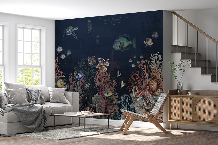 Ponorte sa do hĺbky s touto úžasnou nástennou maľbou “Želva plávajúca vo vode”! Je to ako mať na stene mini akvárium – bez údržby. Predstavte si lenivé sobotňajšie popoludnie, popíjanie čaju a pocit, že ste tak trochu ako Aquaman, keď vám spoločnosť robia korytnačky, žiarivé rybky a koraly. Farby vystupujú do popredia, ale v uvoľnenom, podmorskom štýle. Táto nástenná maľba je ideálna do obývačky alebo dokonca do detskej izby a prináša do interiéru kúzlo a nádych morského sveta. Nech sa každý deň cíti ako na pláži, bez piesku v topánkach! 🌊🐢