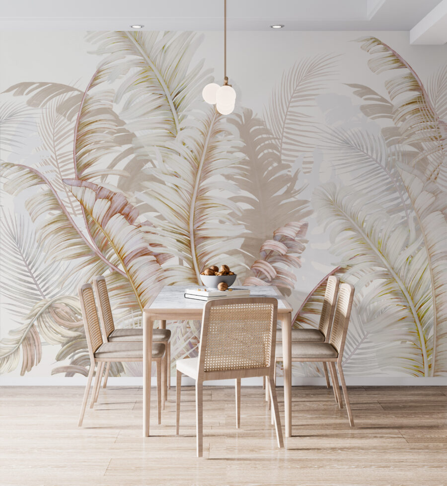Predstavte si, že sedíte doma na svojom obľúbenom mieste obklopení pokojnou krásou prírody bez toho, aby ste vyšli von. Fototapeta “Tropické listy v jemných farbách” vás tam prenesie. Jemné, tlmené tóny tropických listov vytvárajú oázu pokoja, ktorá je ideálna do každej miestnosti, ktorá potrebuje nádych pokoja. Nie je to len tapeta, je to ako jemný šepot lesa. Necítite, ako vánok šumí v listoch? Nainštalujte si túto dizajnovú fototapetu a premeňte svoj priestor na pokojné útočisko – svoj vlastný malý kúsok raja.