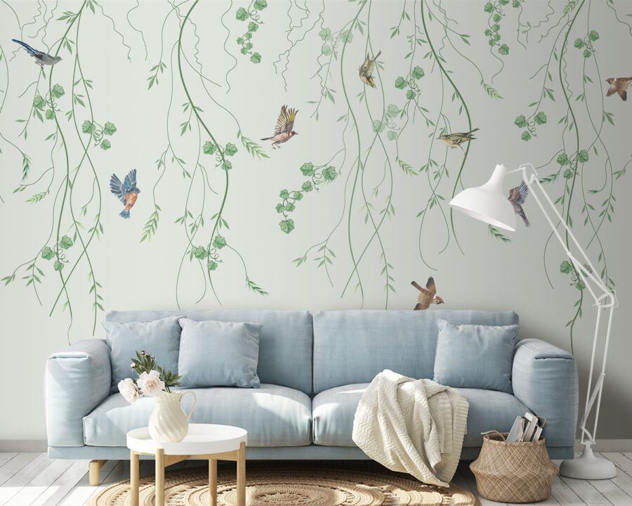 Predstavte si, že pri popíjaní rannej kávy si do interiéru prenesiete sviežosť vonkajšej záhrady. “Nástenná maľba Vtáky poletujúce medzi visiacimi lianami” je ako umiestniť si na stenu kúsok prírody. Vtáky uprostred letu, visiace bujné liany – jednoducho nádhera. Človek by si takmer myslel, že sú živé. Perfektne sa hodí do obývačky, spálne alebo aj do domácej kancelárie. Má tú pokojnú, upokojujúcu atmosféru, po ktorej všetci túžime po dlhom dni. Útulný, a pritom elegantný. Taký, ktorý vám vyčarí úsmev na tvári zakaždým, keď okolo neho prejdete. A kúsok kúzla prírody? Vždy dobré idea❤️