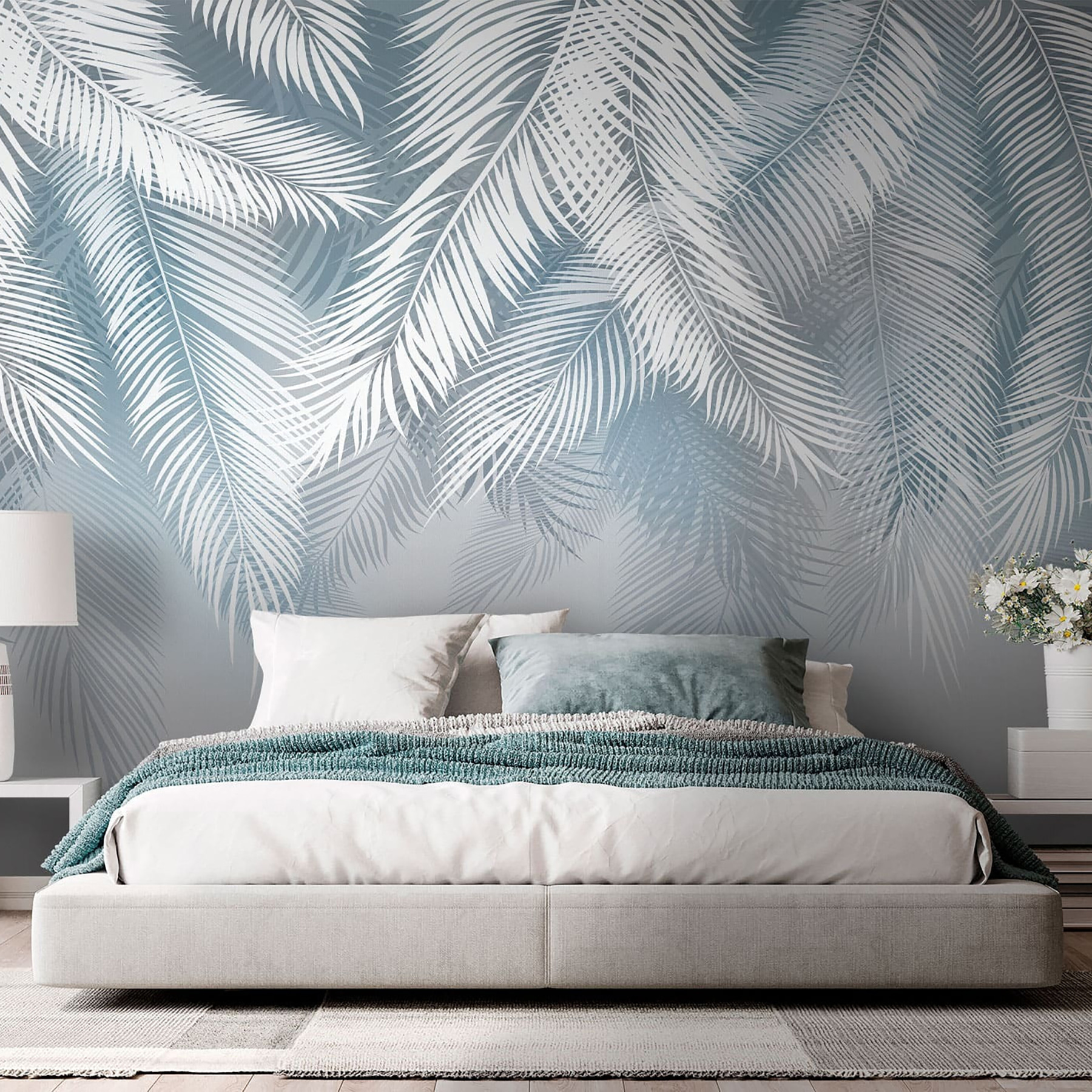Premeňte svoj priestor pomocou tejto úžasnej nástennej maľby s jemnými palmovými listami na mäkkom pozadí. Prináša vzdušnú atmosféru, ktorá je ideálna na to, aby každá miestnosť pôsobila otvorene a prívetivo. Predstavte si, ako popíjate kávu obklopení čarom prírody, zatiaľ čo vám títo listnatí priatelia našepkávajú pokoj do vášho dňa. Jemné vzory listov vytvárajú pocit pokoja, takže sú ideálnou voľbou pre útulné zákutia alebo osviežujúcu akcentovú stenu. Či už ide o pokojný čitateľský kútik alebo živé miesto na stretávanie, táto fototapeta dodáva dokonalý nádych – ako jemný vánok počas teplého popoludnia. Navyše sa dá ľahko kombinovať s inými štýlmi výzdoby, takže sa pripravte na komplimenty. Kto by povedal, že steny môžu byť také štýlové?