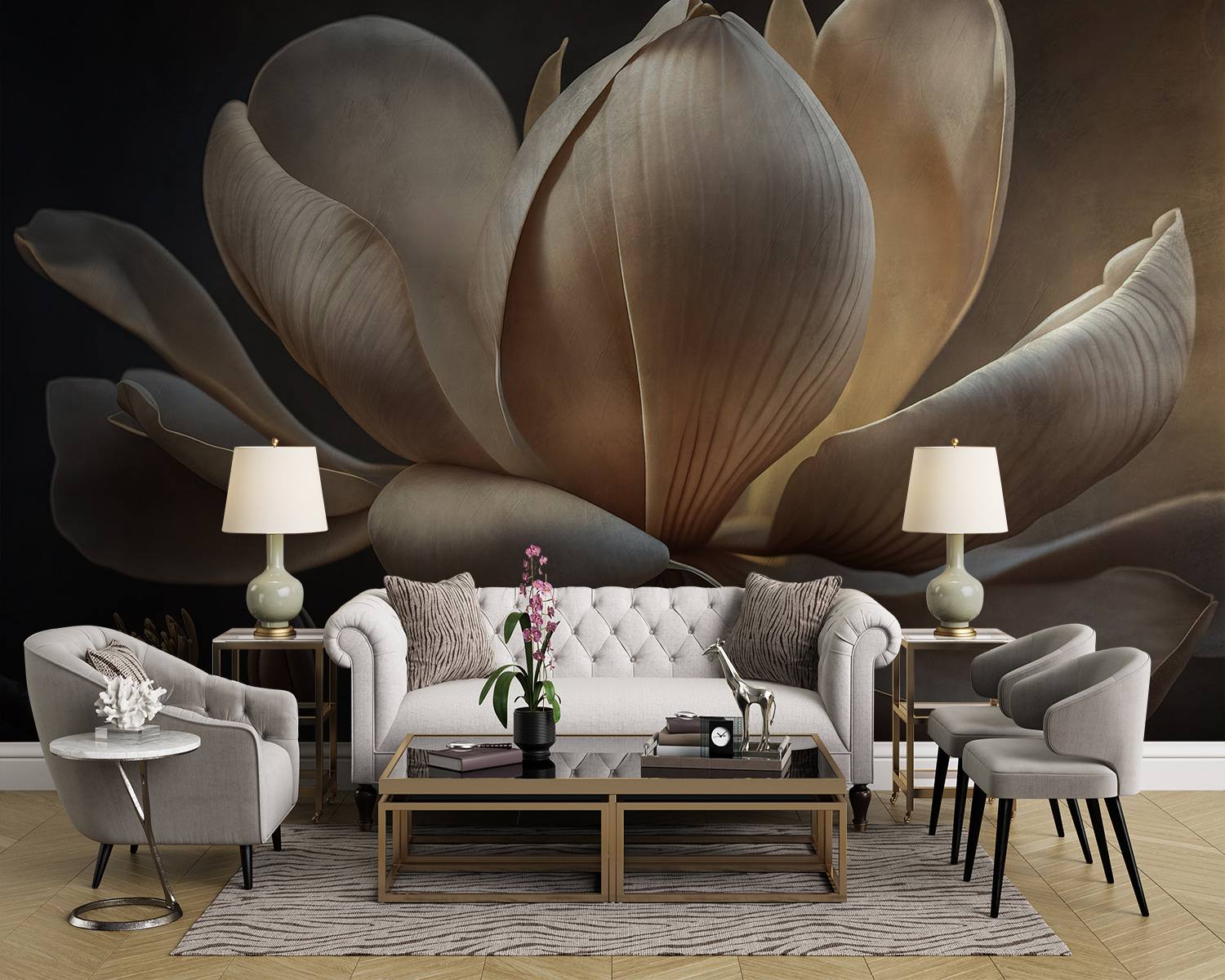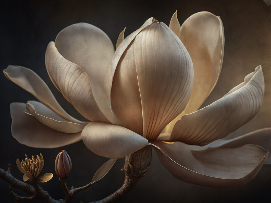Premeňte akúkoľvek miestnosť na pokojný únik s touto nástennou maľbou s jemnými magnóliami, ktoré sa vyhrievajú v mäkkom svetle. Predstavte si, že vstúpite do svojho priestoru a privíta vás upokojujúca elegancia týchto krásnych kvetov – je to ako preniesť záhradu do interiéru. Ideálne pre útulný čitateľský kútik alebo prázdnu stenu, ktorá potrebuje len trochu lásky. Tlmené tóny vytvárajú upokojujúcu atmosféru, takže je ťažké nevydýchnuť si. A hej, takmer počujete šumenie listov alebo jemné šumenie prírody. Je to malý dotyk kúzla, ktorý vám pošepká teplo do každodenného života. Nie je príjemné mať každodennú pripomienku krásy prírody priamo doma?