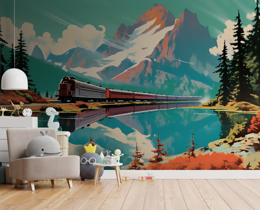 Predstavte si to: vlak, ktorý sa rúti cez majestátne pohorie a dokonale sa odráža v pokojnom jazere. Áno, nástenná maľba “Vlak prechádzajúci okolo hory” to zachytáva v spleti žiarivých farieb. Je to ako lístok na dobrodružstvo pre vaše steny, ktorý vás unesie na miesta, kde sa sláva prírody stretáva so vzrušením z cestovania. Ideálne do detskej izby, úkrytu pre tínedžerov alebo prakticky kamkoľvek, kde by sa vám hodila štipka putovania. Je v ňom niečo pokojné a vzrušujúce – takmer akoby ste počuli pískanie vlaku a cítili ten svieži horský vzduch. Ideálne na rozprúdenie denných snov alebo na premenu miestnosti na útulný únik!