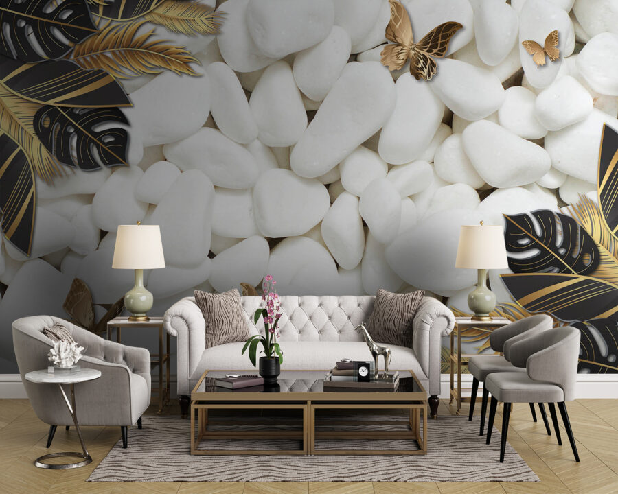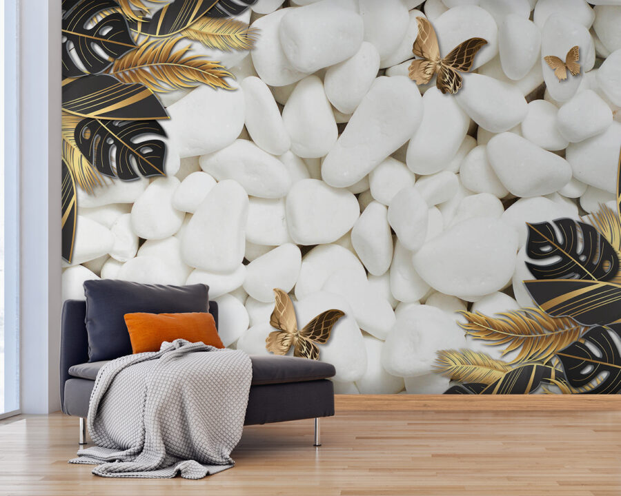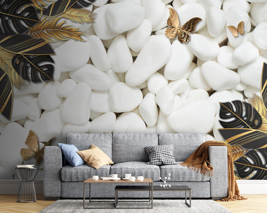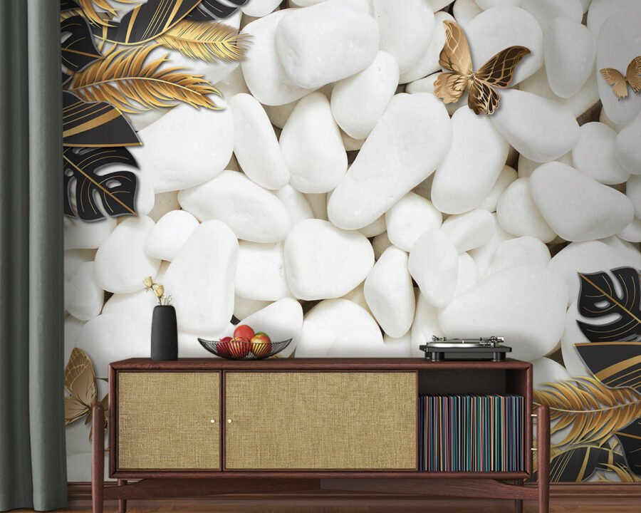 Premeňte akýkoľvek priestor pomocou podmanivého kúzla fototapety Príroda je pokojná v bielej a čiernej farbe. Predstavte si, že vstúpite do pokojného úniku, kde nedotknuté biele kamene a éterické motýle vytvárajú pokojné pozadie. Vyzýva k pokoju – ideálna pre útulný čitateľský kútik alebo tú zložitú stenu, ktorá jednoducho potrebuje niečo malé. Predstavte si, ako sa usadíte so svojou obľúbenou knihou, obklopení týmto upokojujúcim dizajnom, zatiaľ čo svet vonku sa stráca. Je to dotyk prírody v interiéri bez neporiadku a rozruchu. Kto by nechcel malú každodennú pripomienku pokoja? Navyše hravý kontrast dodáva tomuto knižnému doplnku štipku osobitosti, vďaka čomu sa s ním dá začať konverzovať. Ideálny pre tých, ktorí oceňujú čaro sveta prírody, a to priamo z ich obývačky!