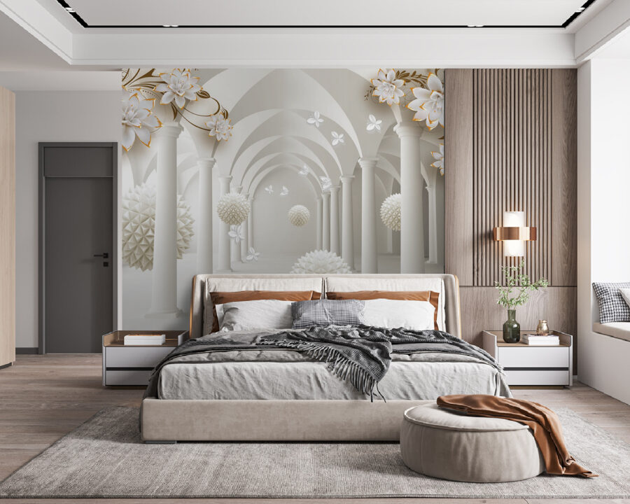 Predstavte si, že vstúpite do miestnosti, ktorá vás okamžite prenesie do elegantnej, snovej haly plnej vznášajúcich sa kvetinových gúľ – znie to čarovne, však? Táto fascinujúca nástenná maľba “Elegantná hala s plávajúcimi kvetinovými guľami” nie je len umeleckým dielom, ale aj zážitkom. Jemné 3D kvetinové prvky a oblúky pripomínajúce tunel dodajú vášmu priestoru nádych sofistikovanosti s hravým nádychom. Ideálny pre tých, ktorí milujú pocit, že ich obývacia izba je portálom do pokojnej záhrady alebo očarujúceho paláca. Jemné, neutrálne tóny sa navyše bez námahy kombinujú s akýmkoľvek štýlom interiéru, čo z neho robí univerzálnu voľbu na premenu nevýrazných stien na vizuálne ohromujúci ústredný bod. Či už chcete do svojho každodenného života vniesť nádych fantázie, alebo len chcete získať jedinečný podnet na konverzáciu, táto nástenná maľba sa dokonale hodí – prečo nedopriať svojmu priestoru tento wow faktor?
