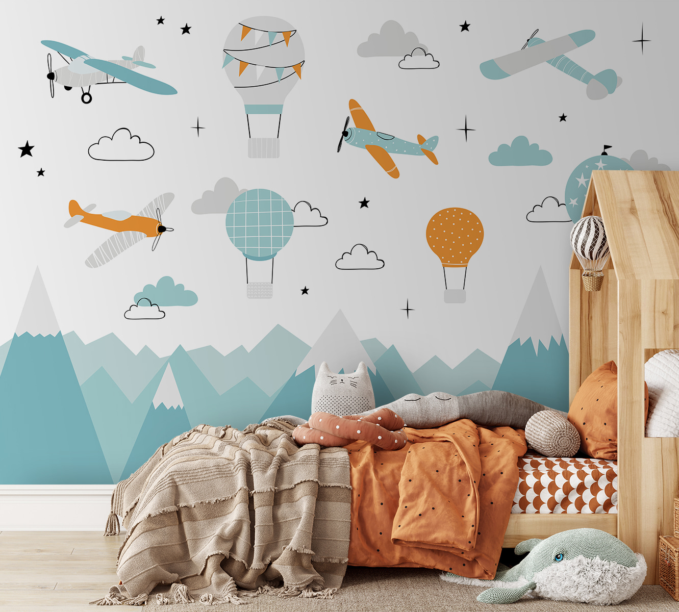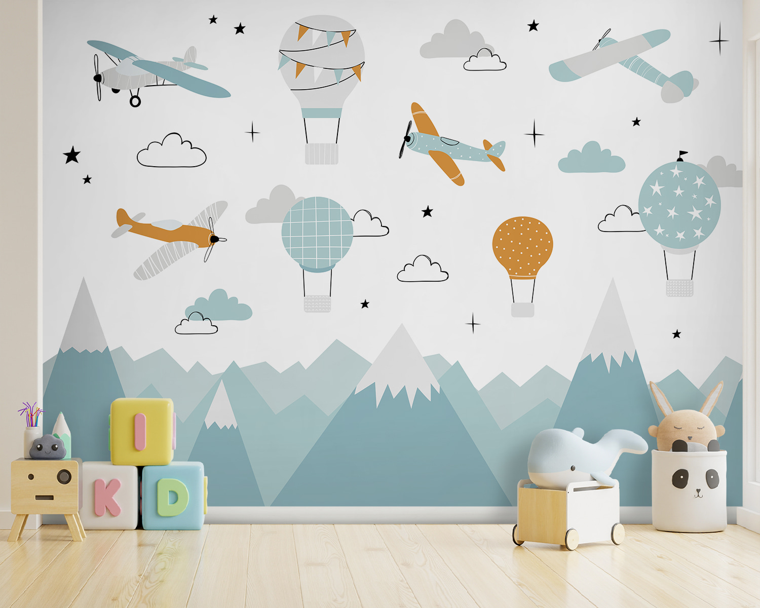 Premeňte svoj priestor na rozprávkové nebo s touto nádhernou nástennou maľbou, na ktorej sú zobrazené lietadlá letiace vysoko nad zemou a veselé teplovzdušné balóny. Predstavte si, že vstúpite do miestnosti, kde živé farby a hravý dizajn vyvolávajú radosť a podnecujú fantáziu. Je to ako keby každý deň mohol byť dobrodružstvom – kto by sa nechcel cítiť trochu ľahšie? Očarujúce ilustrácie dodávajú náznak nostalgie, takmer ako detské sny. Ideálne do detskej izby, herne alebo dokonca do vášho vlastného útulného kútika, je to radostná pripomienka, aby ste naďalej snívali, bez ohľadu na to, koľko máte rokov. Tak ju zaveste, sadnite si a nechajte dobrodružstvo začať!