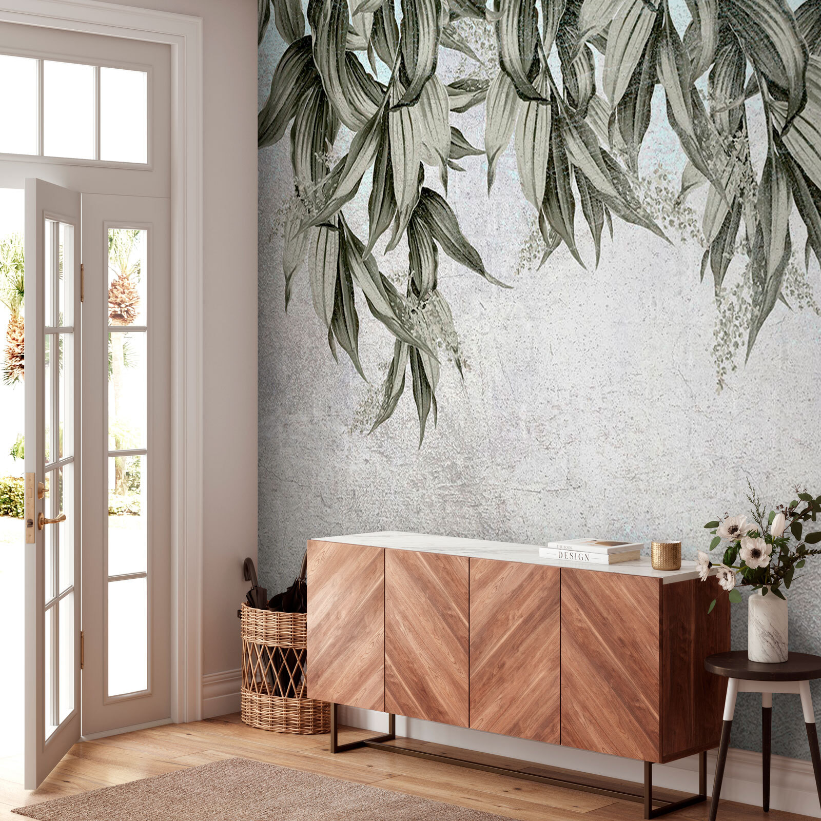Premeňte nudné steny na pokojné útočisko s touto nástennou maľbou so zavesenými listami na jemne zatienenej stene. Predstavte si, že vstúpite do miestnosti, ktorá je akoby pobozkaná jemným vánkom, kde sa listy jemne kolíšu a tancujú a pozývajú na pokojné vibrácie. Je ideálny na vytvorenie tejto oázy džungle priamo vo vašom obytnom priestore. Či už je to v útulnom zákutí alebo v priestrannej obývačke, táto nástenná maľba šepká relaxáciu, vďaka ktorej sa každé stretnutie bude cítiť výnimočne. Nenápadná elegancia jej dodáva nadčasový šarm – kto by nemal rád dotyk prírody v interiéri? Je to ako preniesť krásnu záhradu dovnútra, bez zalievania!