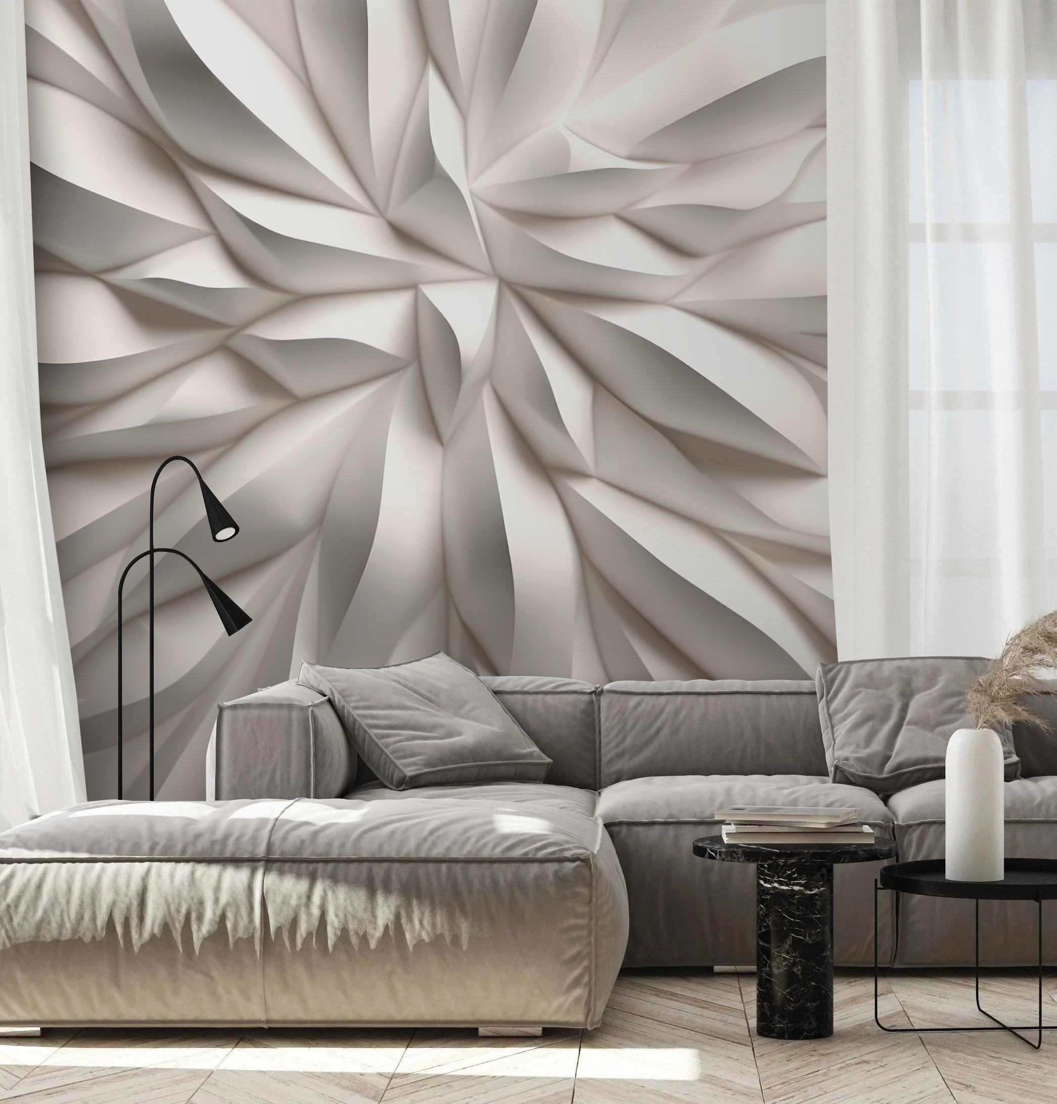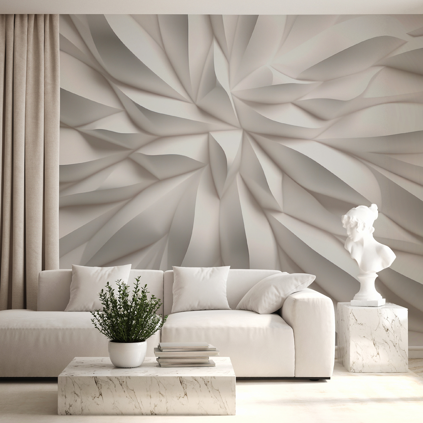 Jemné biele záhyby vytvárajú dynamický 3D efekt, ktorý je moderný a upokojujúci zároveň. Úprimne povedané, vyzerá takmer ako obrovský, zložitý kvet. Ideálny pre každého, kto miluje sofistikovanú jednoduchosť s nádychom. Vyskladajte si ho v obývačke, spálni alebo dokonca na pracovisku – okamžitý upgrade! Navyše je v kategórii Kvetinové nástenné maľby 3D, takže viete, že má prirodzenú, organickú atmosféru. Ponorte sa do dizajnového dobrodružstva s touto jedinečnou nástennou maľbou – nechce sa vám len natiahnuť ruku a dotknúť sa jej?